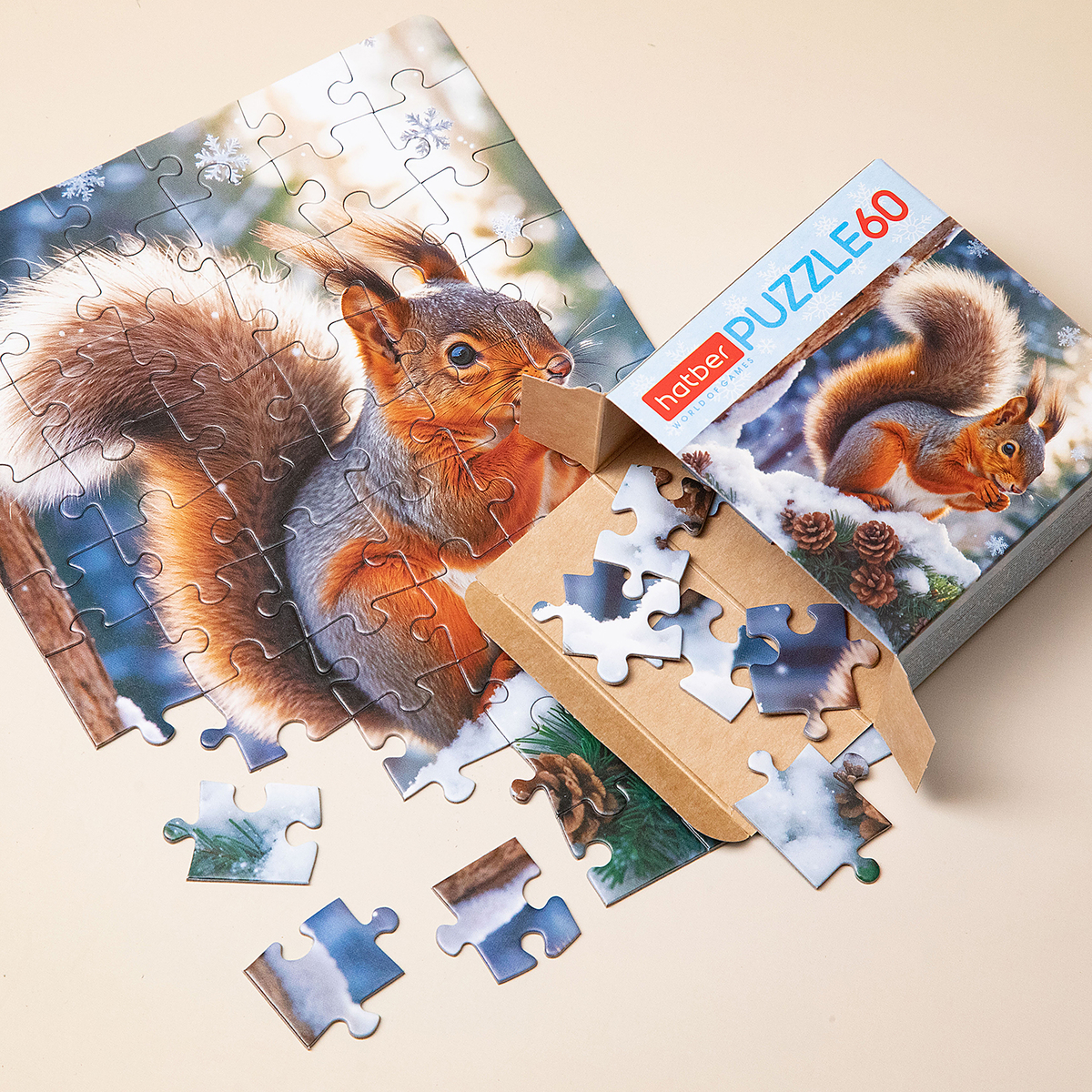 Когда за окном скоро начнет кружится снег, самое время собирать тёплые моменты — кусочек за кусочком. Серия зимних пазлов от Hatber на 60 элементов — это маленькие радости, которые сделают вечера уютнее.