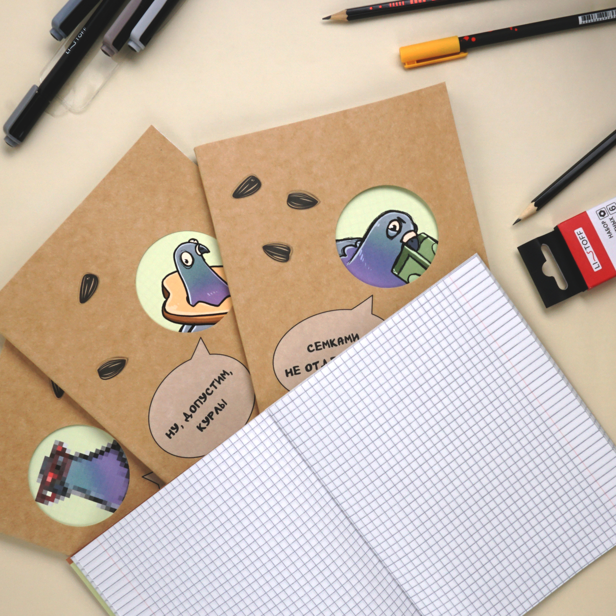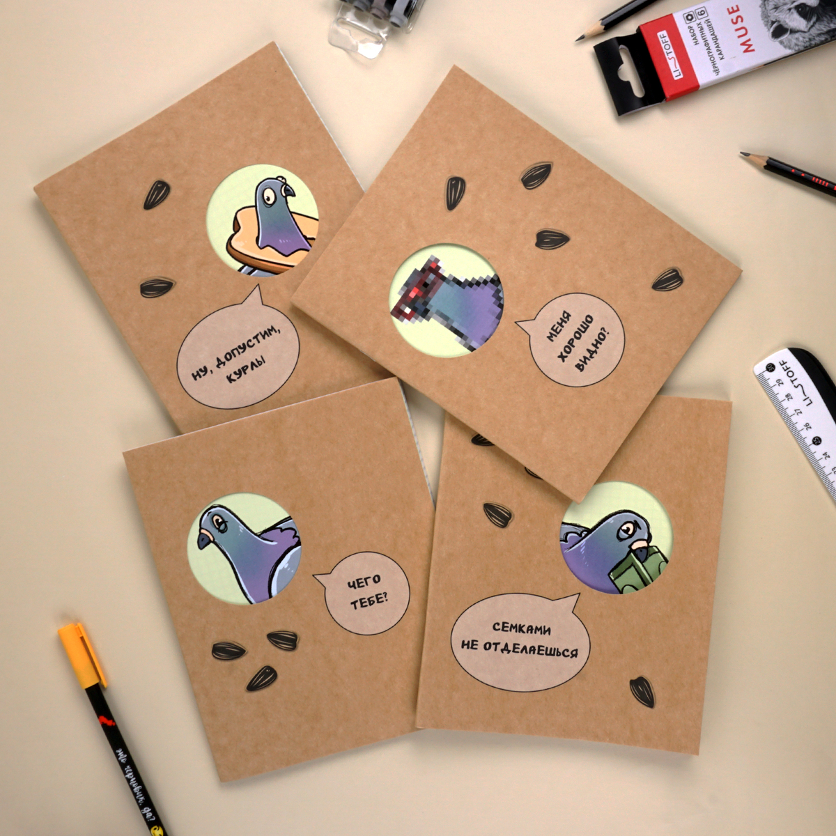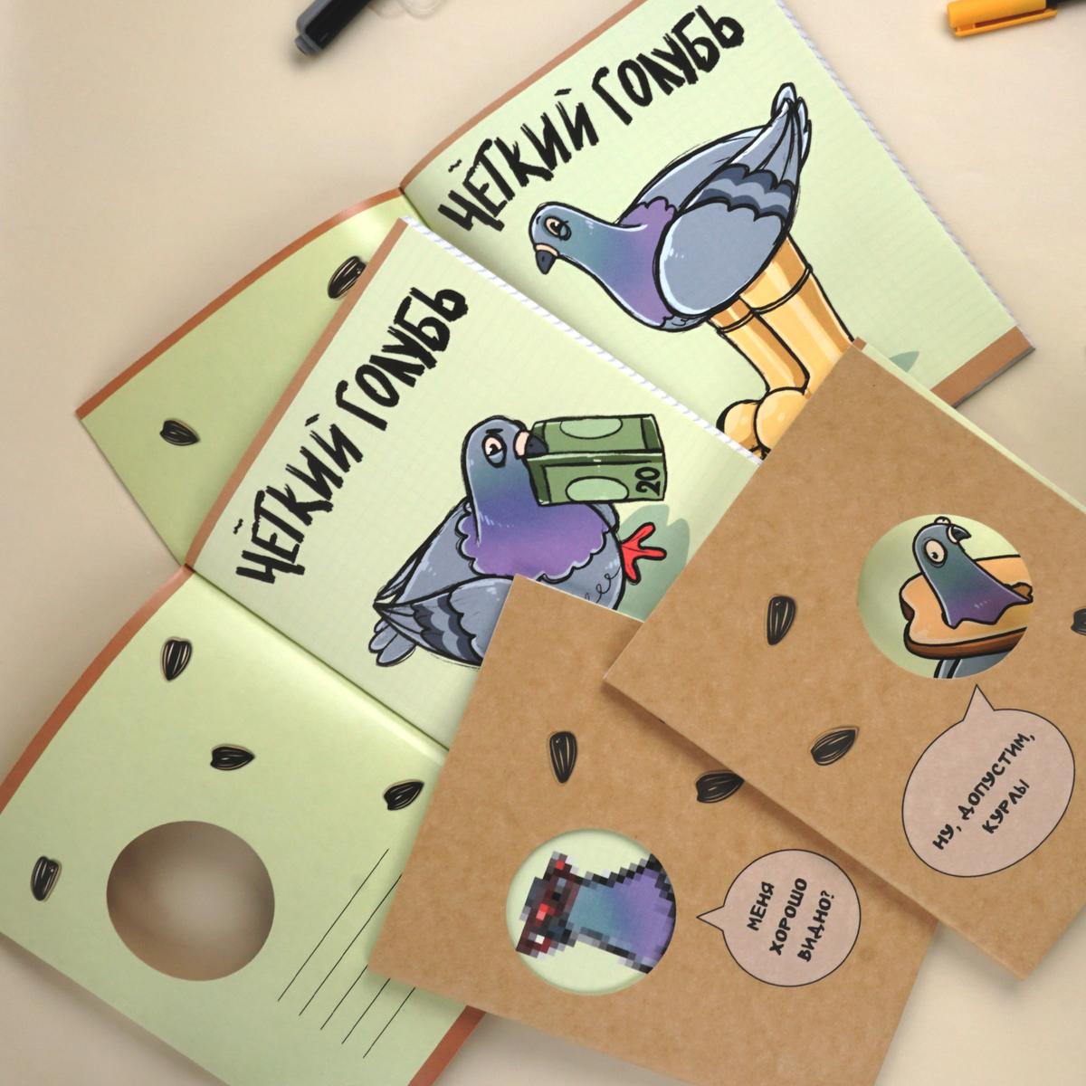 Уникальное сочетание крафтовой обложки с вырубкой и мелованной бумаги придает изделию неповторимый шарм. «Чёткий голубь» — это выбор тех, кто не довольствуется обыденным.