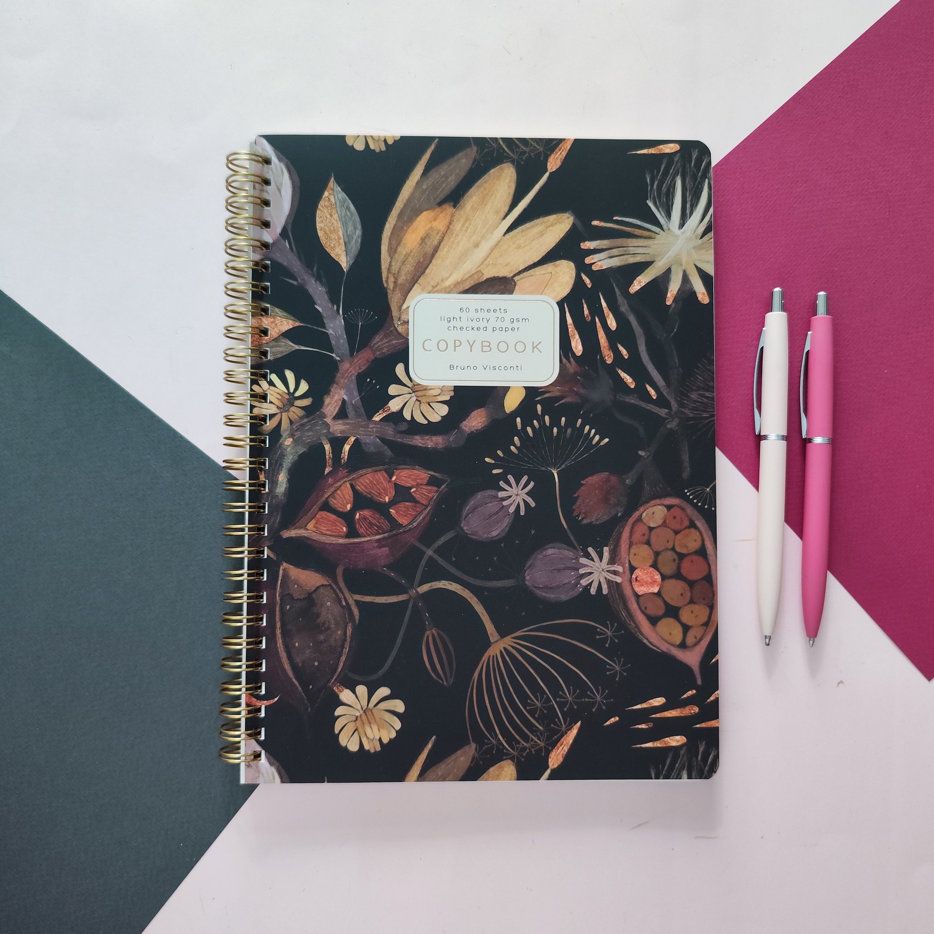 Тетрадь на гребне «Ночные цветы» от Bruno Visconti выпускается в формате В5 в клетку для ведения записей различного характера.