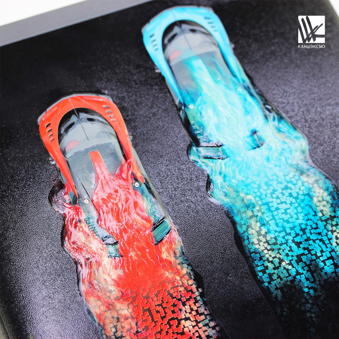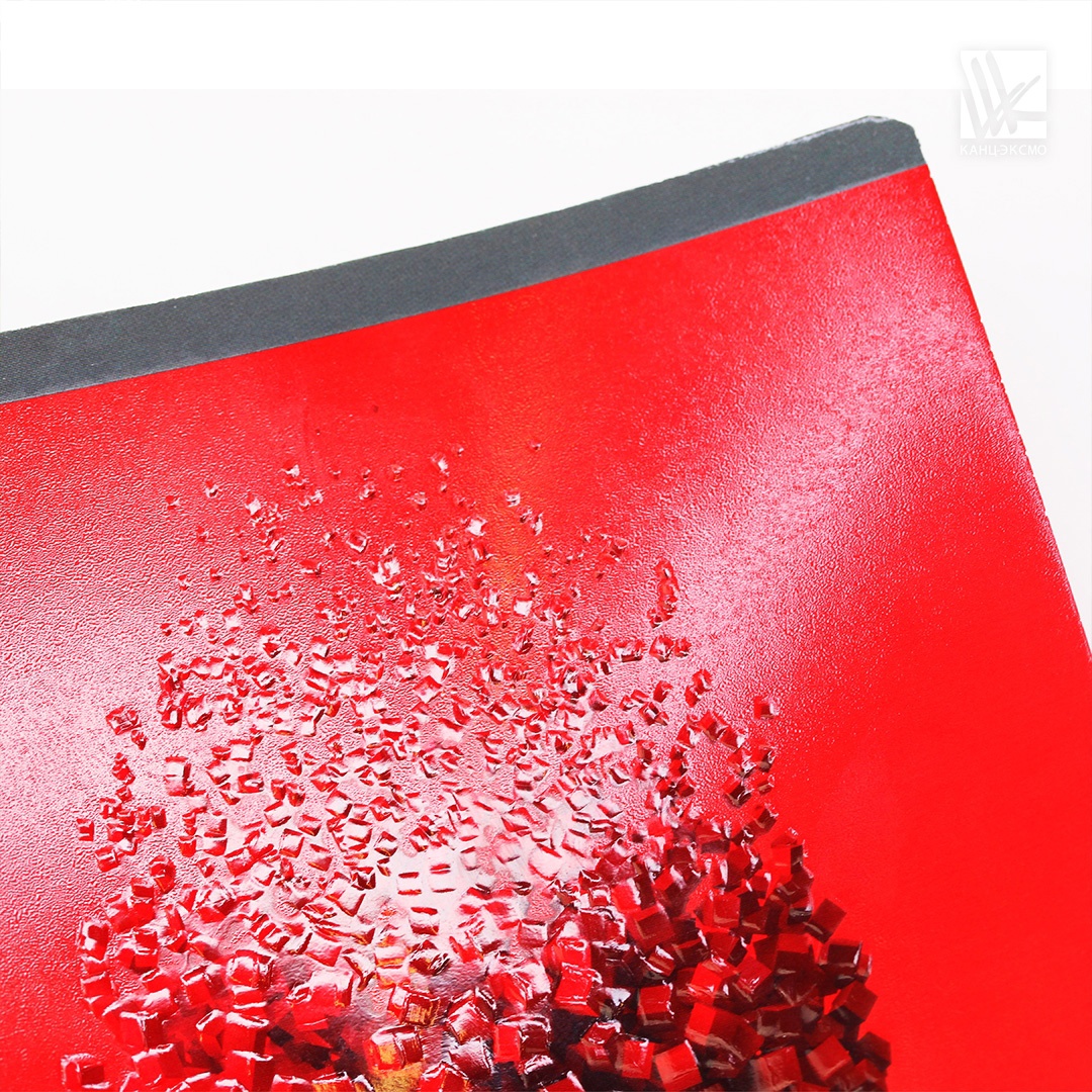 Серия дополнена эффектной отделкой твин лак в сочетании с многоуровневым конгревом, что придаёт объёмный акцент всей поверхности, неповторимый дизайн и тактильно приятное ощущение. Скруглённые углы надолго сохраняют привлекательный внешний вид тетради.