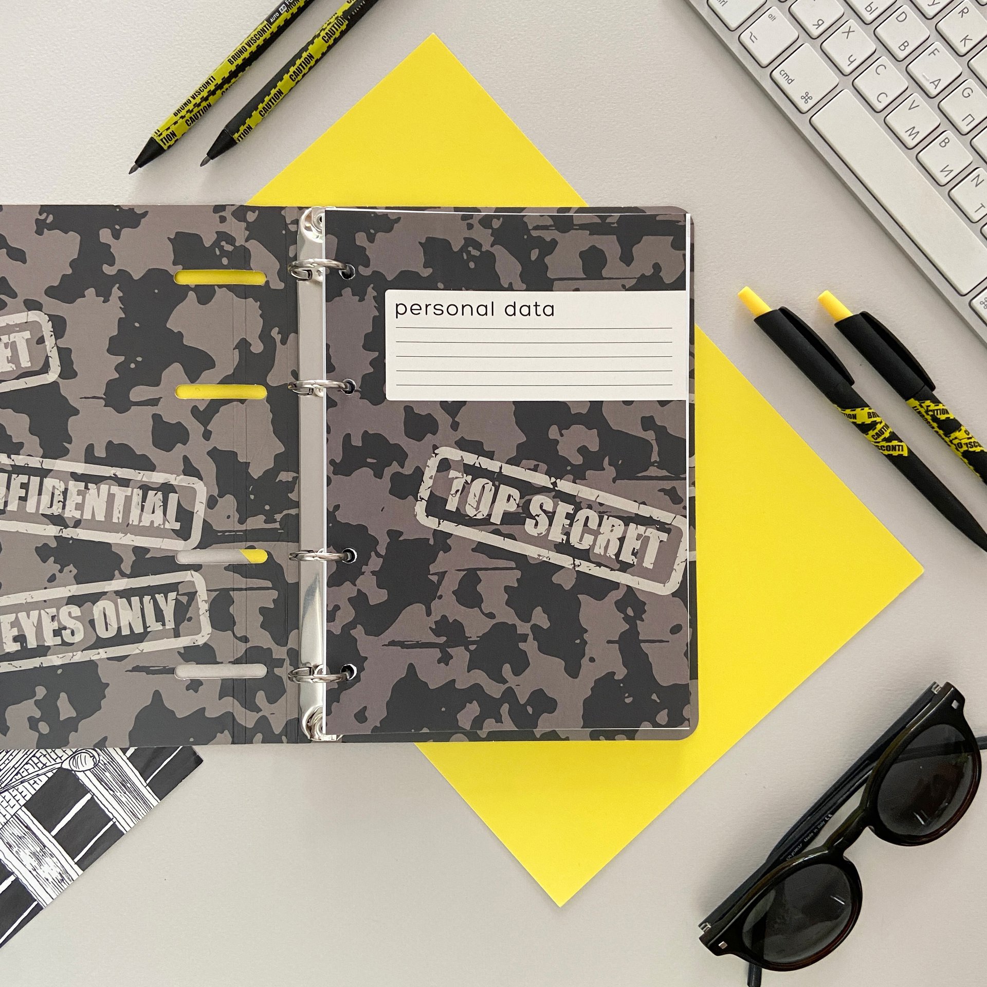 Для вас, любители невероятных приключений и захватывающих шпионских разоблачений, придуман дизайн тетради на кольцах со сменным блоком серии Secret agent. Стильная тетрадь с гибкой обложкой из плотного картона станет прекрасным инструментом в изучении новых предметов. Обложка хорошо защищает блок от повреждений и быстрого износа при активном использовании длительное время. Углы обложки скруглены.