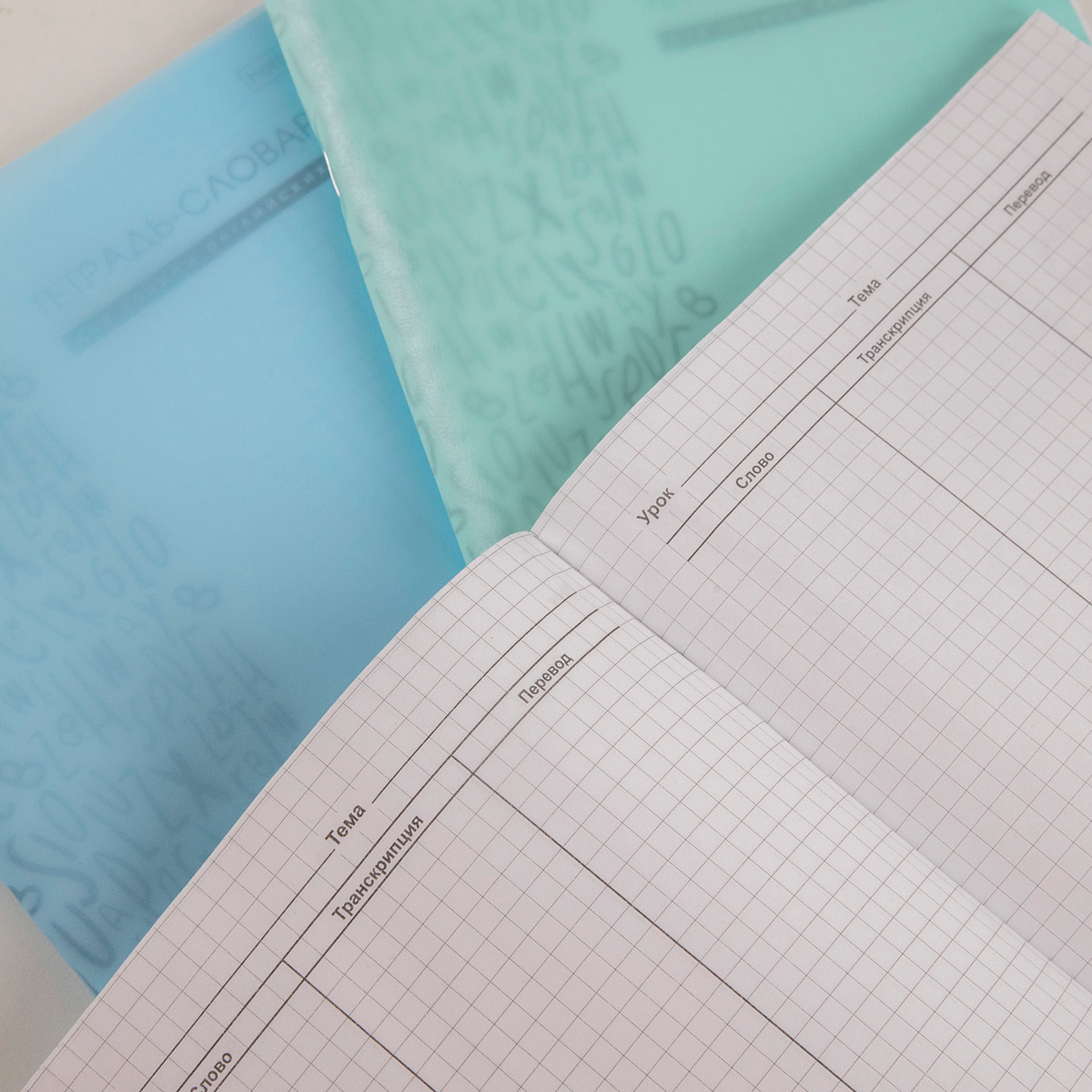 Для усвоения языковой базы в тетрадях есть необходимый справочный материал. Для надёжности и опрятности тетради оснащены пластиковыми обложками (толщина пластика: 190 мкм, фактура пластика: песок) в трёх нейтральных цветах: