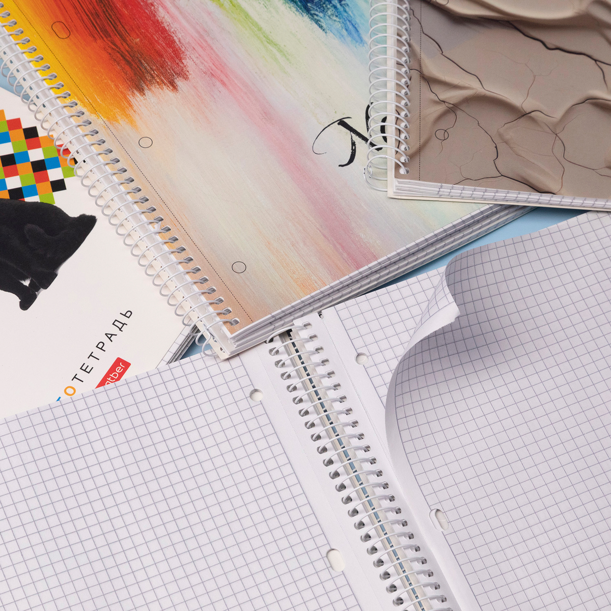 - Крепление на спирали дает возможность раскрывать тетрадь на 360 градусов.