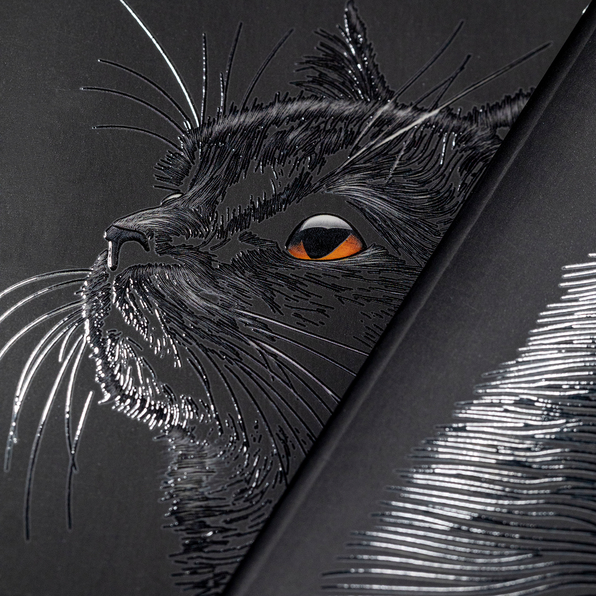 3D-лак позволяет кошачьему меху усам и ярким глазам играть на свету.