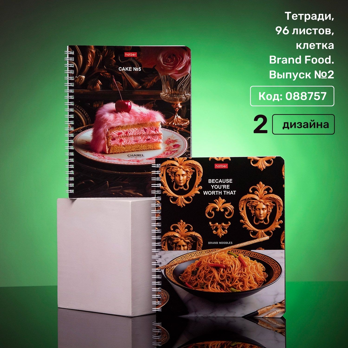 В серии Brand Food. Выпуск № 1 и Brand Food. Выпуск № 2 входят тетради по 96 листов и серия тетрадей по 48 листов — Brand Food.