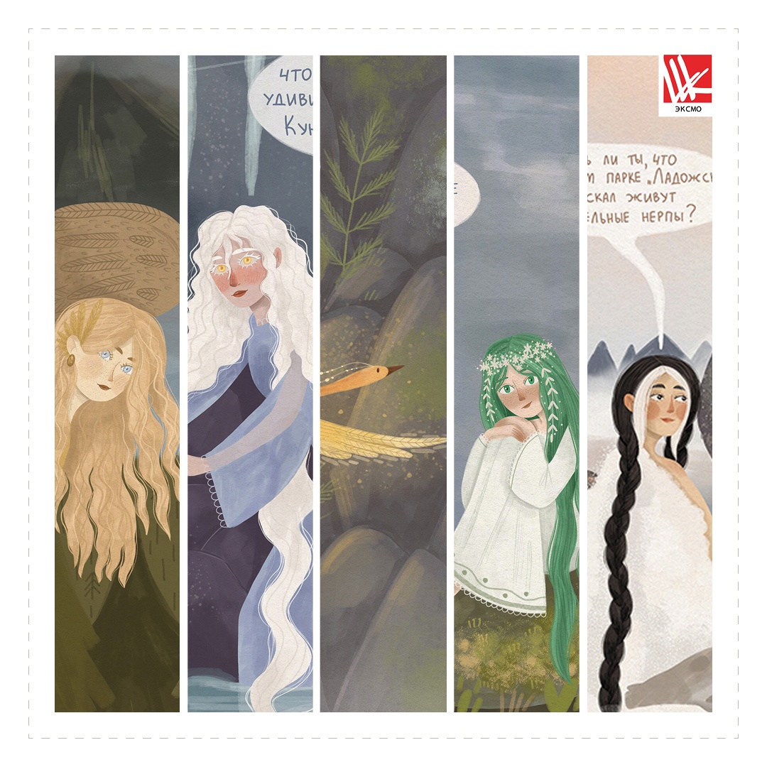 На обложке изображены мифические девушки, олицетворяющие живописные места России. Тетради помогут привить чувство прекрасного и узнать об уголках нашей Родины чуть больше.