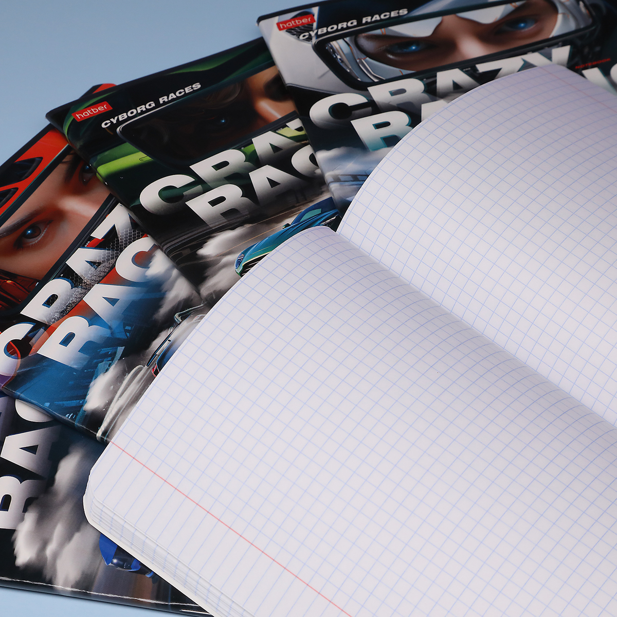Всё вышеперечисленное, атмосфера настоящих безумных гонок — в новой серии общих тетрадей Crazy Racing от Hatber.
