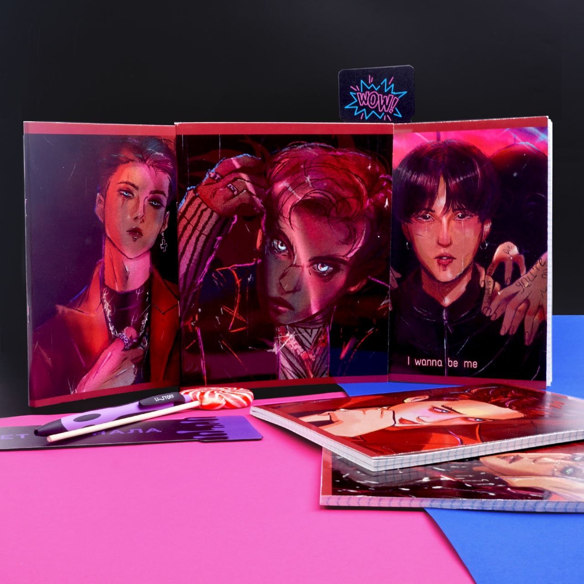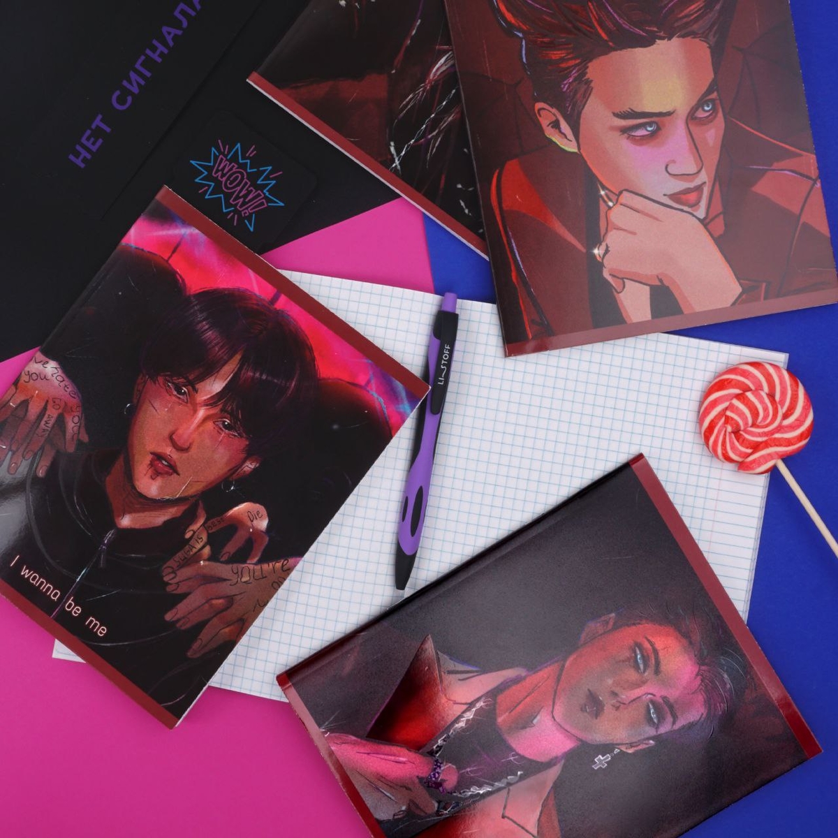 У нас есть то, что тебе нужно! Тетрадь с потрясающим дизайном с твоими любимыми айдолами! Представь, берёшь тетрадь, а на тебя смотрят они! Вдохновение для учёбы или творчества обеспечено!