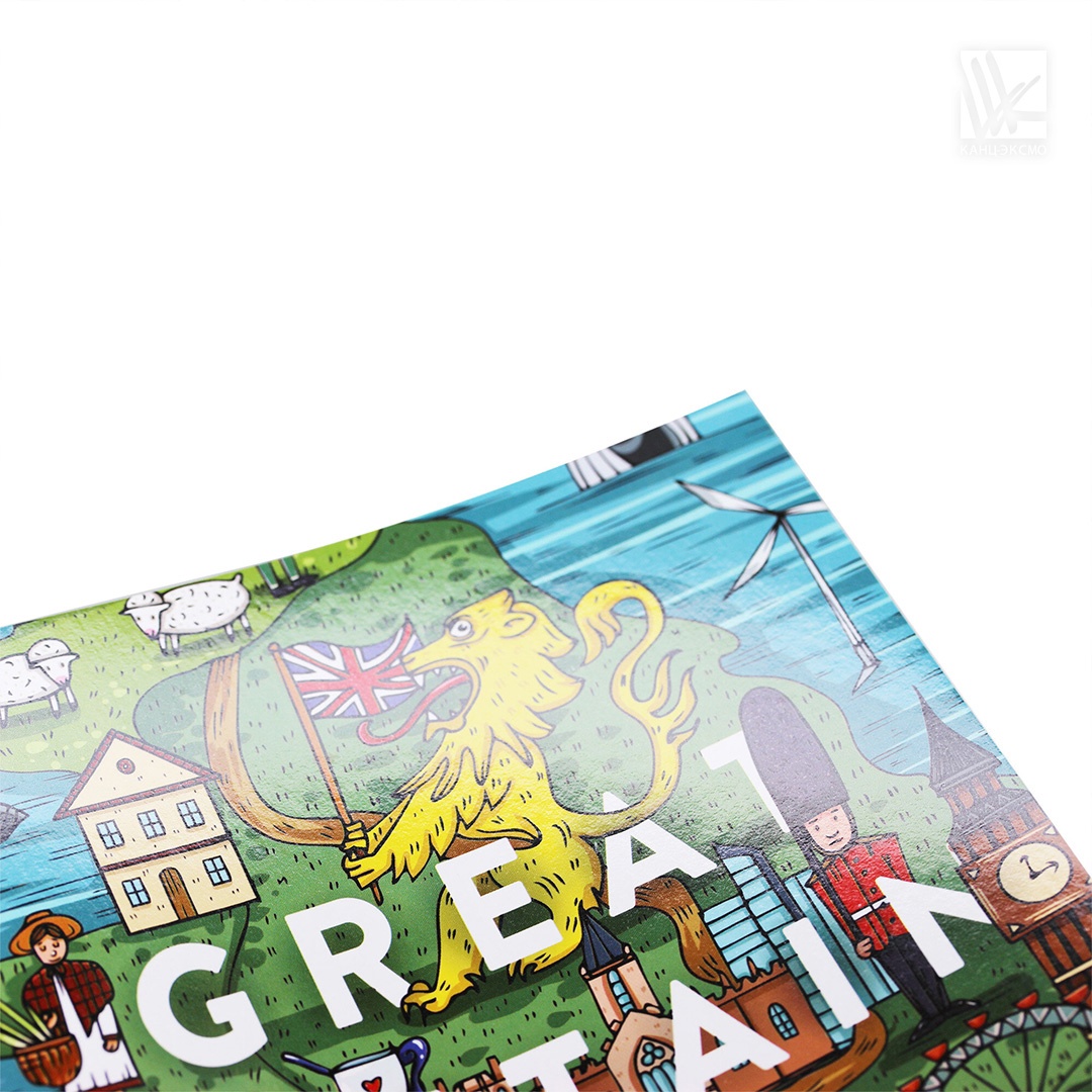 Обложка покрыта глянцевой ламинацией, которая защищает изделие от влаги и повреждений и придаёт яркий насыщенный цвет иллюстрации.
