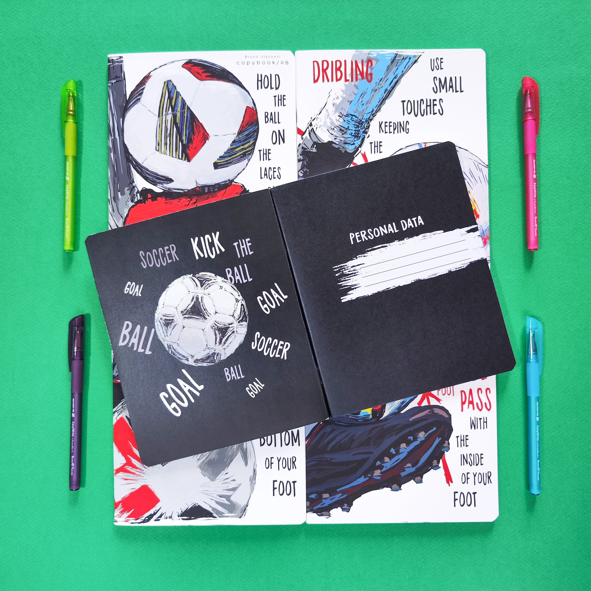 Дизайнеры Bruno Visconti передали эту атмосферу в серии тетрадей Football.Black and white. Динамичный дизайн прекрасно дополняет ламинация soft touch.