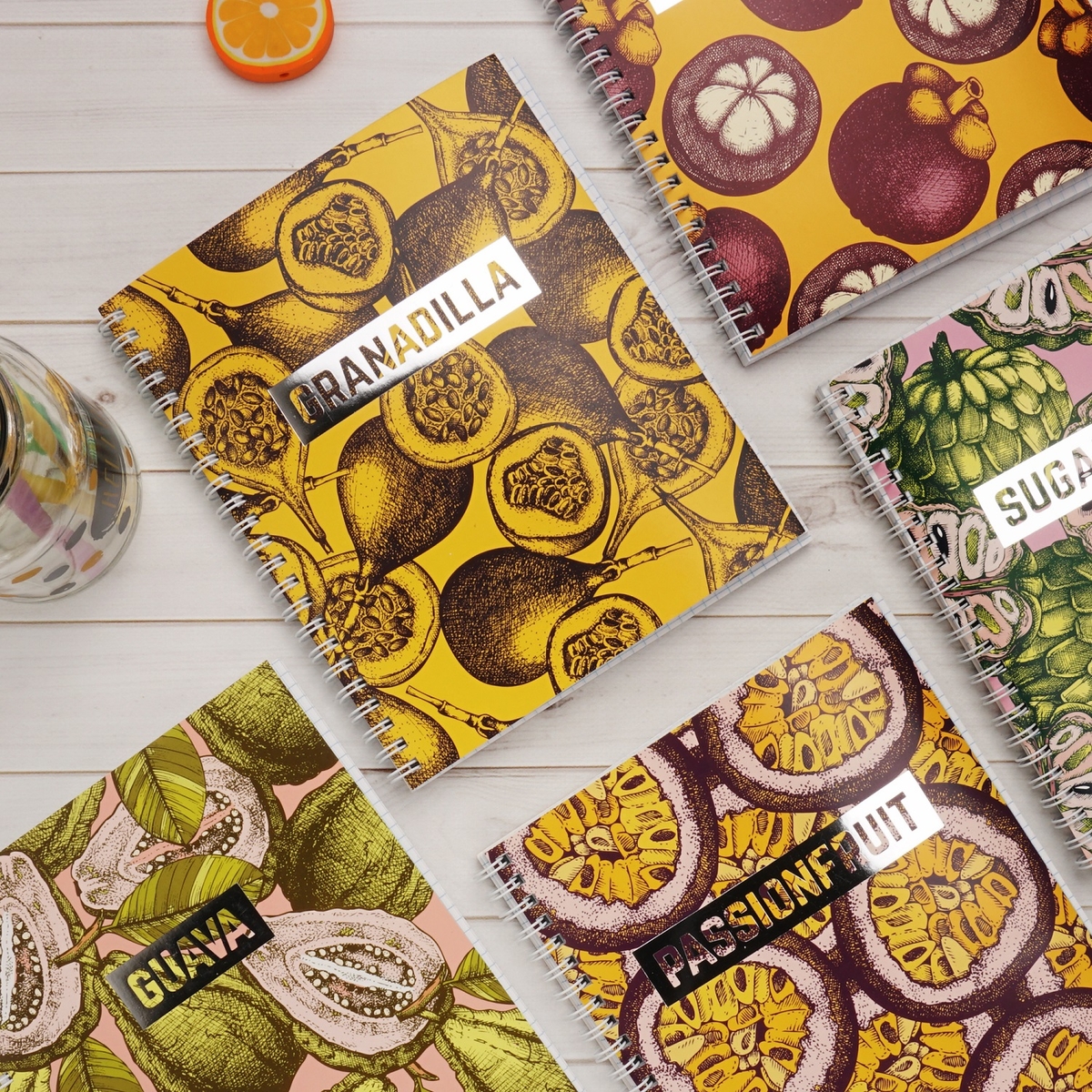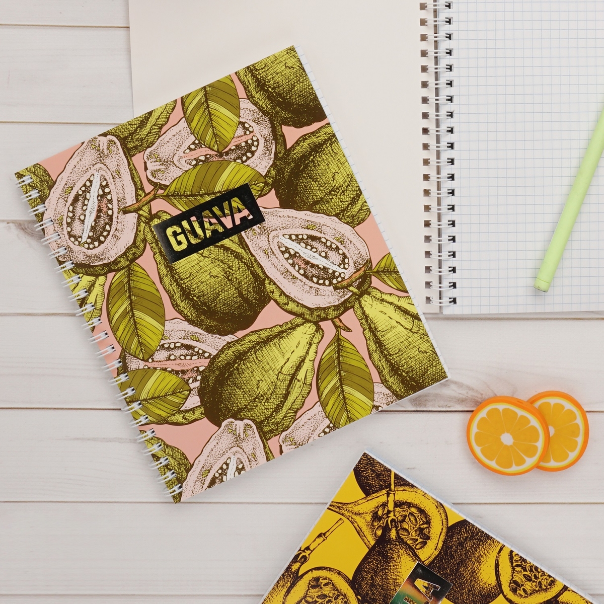 Тетрадь общая 80 листов А5-формата listoff создана для современной молодёжи с учётом актуальных трендов. Яркие экзотические фрукты перенесут вас в жаркие тропики. Тиснение фольгой «серебро» придаёт тетради стильный и необычный вид. Классический внутренний блок в клетку делает тетрадь универсальной в использовании.