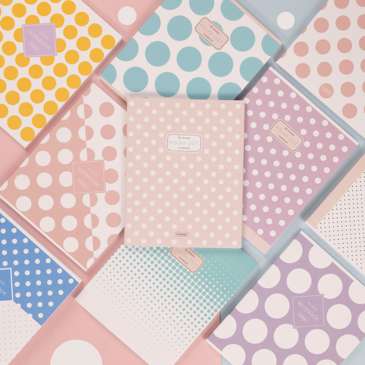 Совсем другое дело, когда точка становится элементом орнамента! Hatber представляет две серии тетрадей формата А5 40 и 60 листов на скобе «Горохи», в которых смешались нежные пастельные тона, динамика, ритм — и точки! Обложки обеих серий выглядят стильно, необычно и очень декоративно. Кроме того, отсутствие сюжета придает им приятную нейтральность.