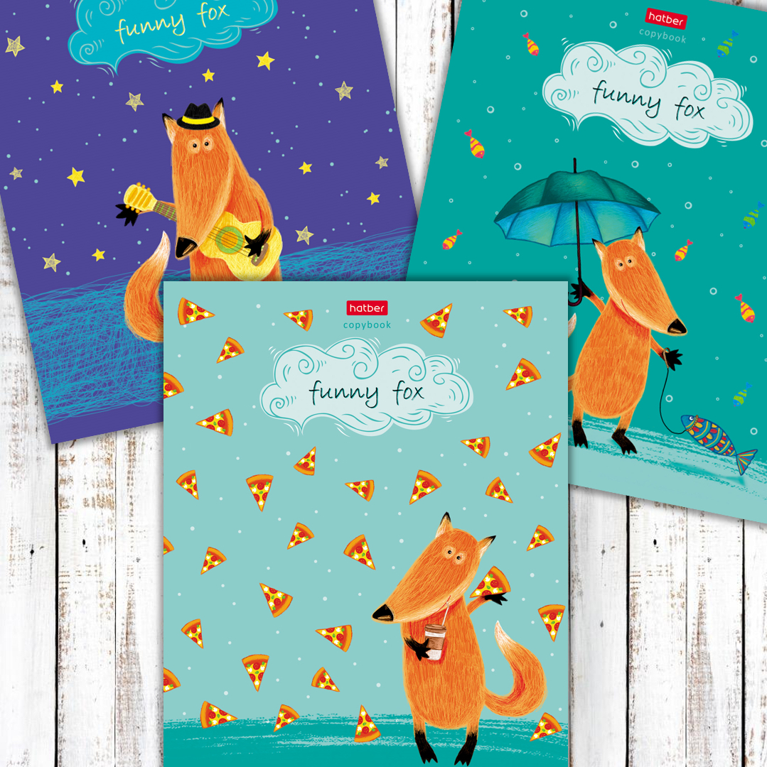 ДА рисованным дизайнам с забавной лисичкой на обложках новых тетрадей ТМ Hatber серии Funny Fox!