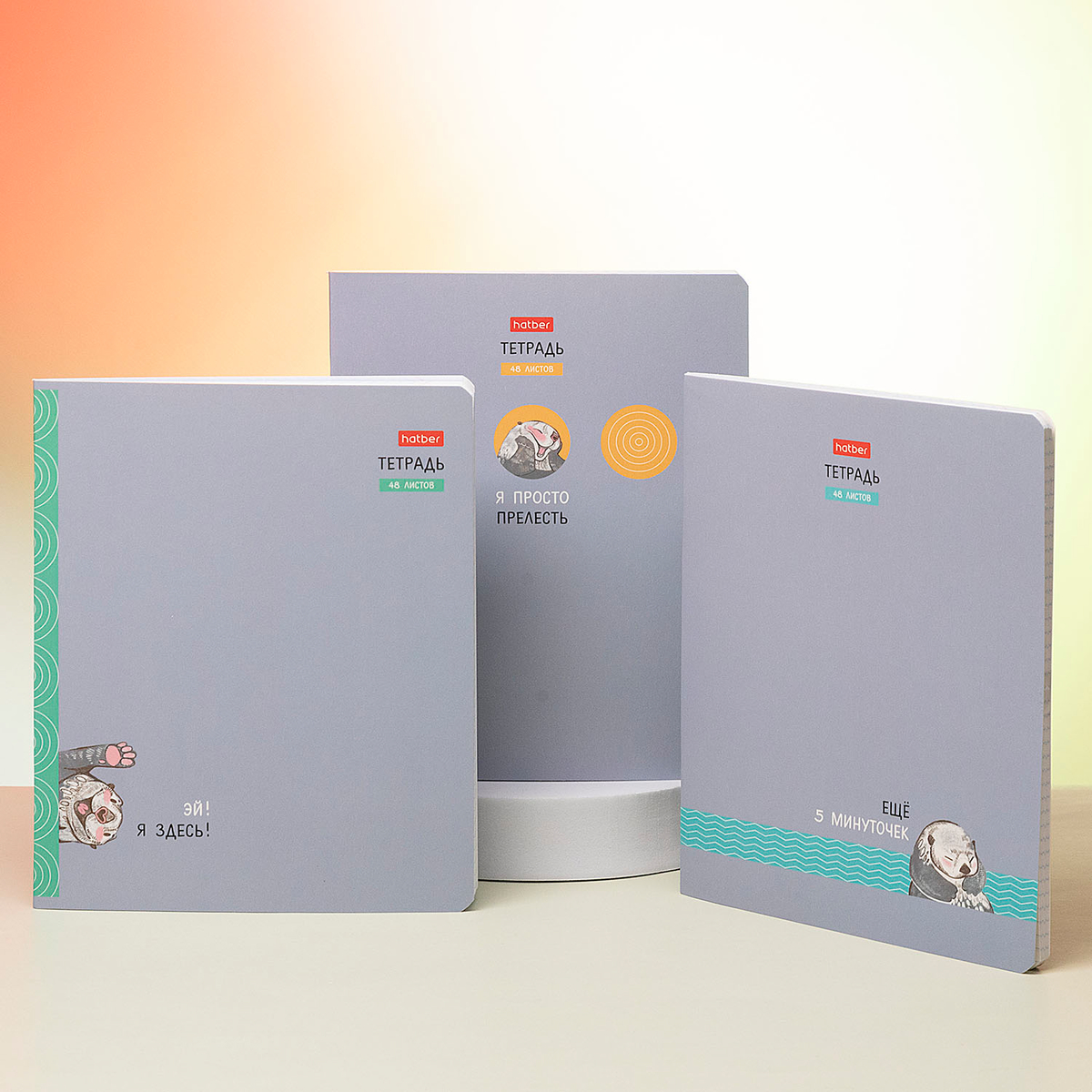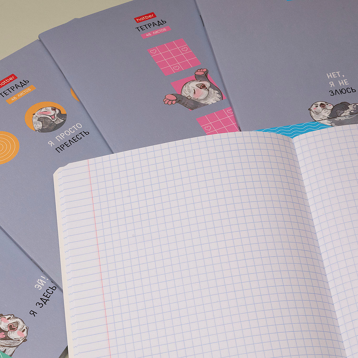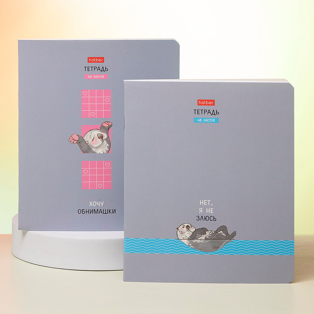 О милейших морских выдрах Hatber рассказывает в картинках на обложках новой серии тетрадей «Калан Кеша». Яркий минимализм на нежно-сером фоне, смешной Калан с розовыми лапками и бодрое настроение — в наличии!