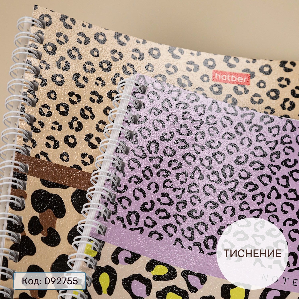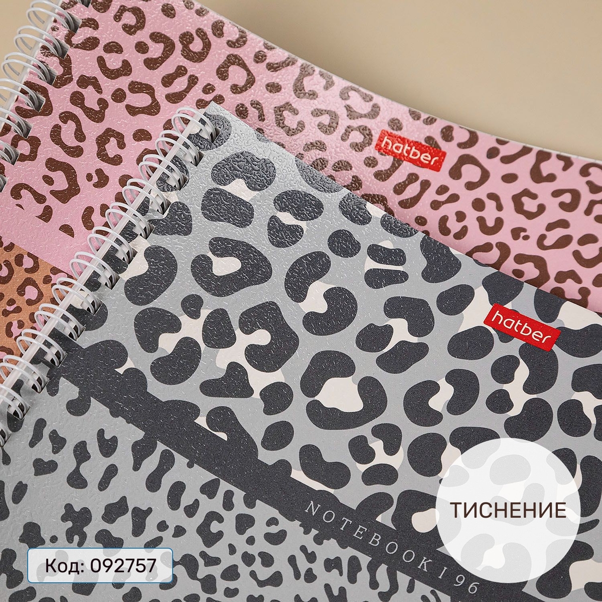 Hatber представляет тетради LEO-принт формата А4 на гребне. На обложках — знакомый пятнистый принт крупной и мелкой фракции. Расцветка и природная, и неожиданная: в розовых, лавандовых и серо-голубых тонах. Тиснение приятной шершавости тоже присутствует.