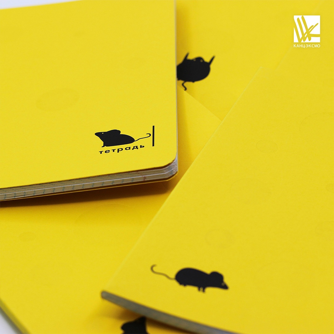 Тетрадь общая от «Эксмо» — премиальный продукт с выразительным фоном и броским графическим дизайном. Цвет картона относится к классификации TOTAL YELLOW, или оптимистичный жёлтый, который дополнен рельефным рисунком благодаря блинтовому тиснению. На обложке изображены похождения мышек.