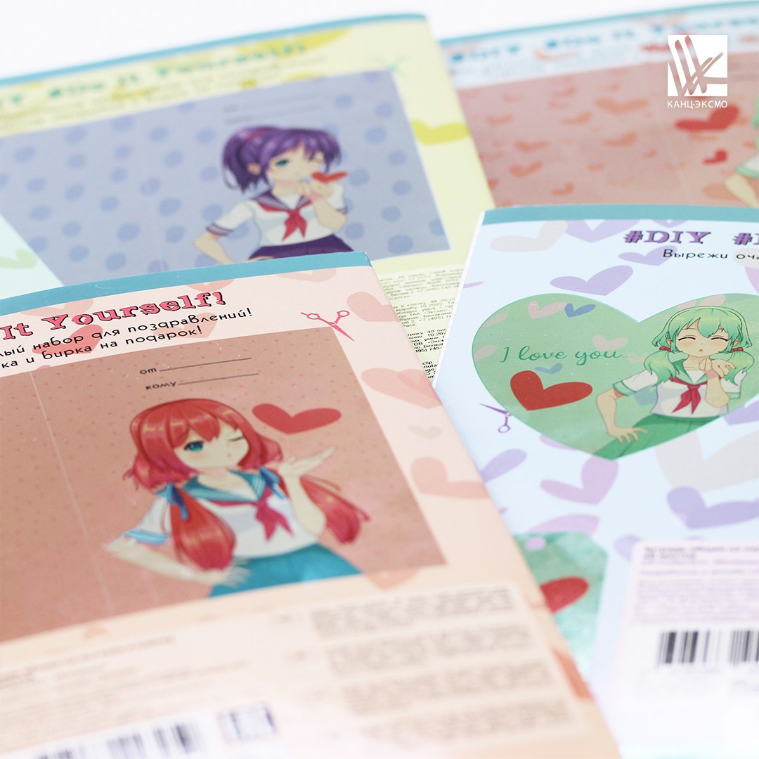 Коллекция тетрадей DIY-collection от «Эксмо» с аниме-милашками создана не только для ежедневных записей и конспектов, но и для воплощения творческих идеи и замыслов. Каждая серия дополнена мини-наборами для творчества, которые приумножат позитивное настроение в течении всего года. На обороте задней обложки размещены понятные инструкции, схемы и шаблоны мини открыток, закладок для книг, бирок для подарков, декоративных подставок.