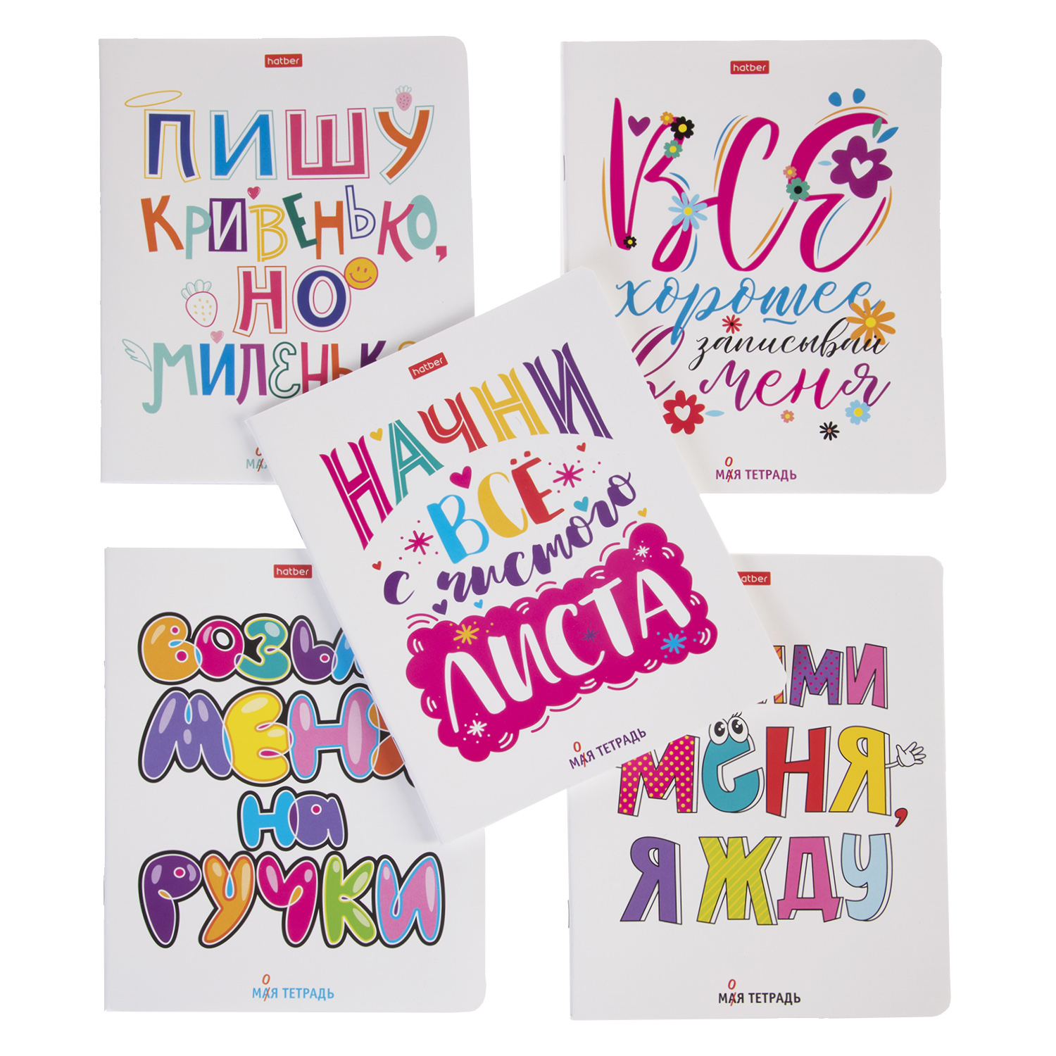 Вторая серия «Моя тетрадь» тоже на белой обложке, но с яркими цитатами призывает нас к уюту, которого порой не хватает. Например, на тетради написано «Обними меня, я жду», или же «Возьми меня на ручки». Согласитесь, что такие желания часто нас посещают и бывают очень актуальны.