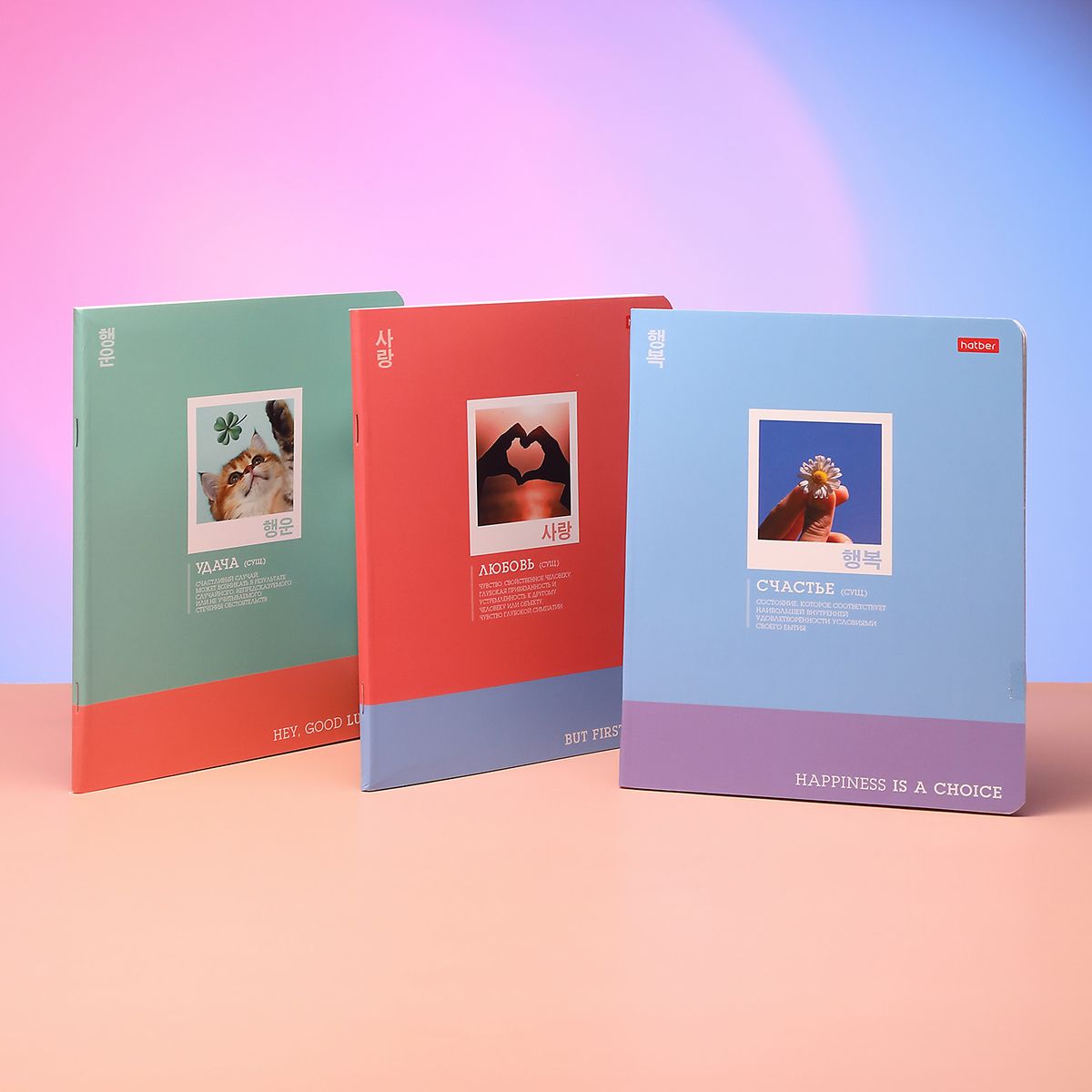 Hatber представляет оригинальную серию тетрадей «О главном!». Минималистичный дизайн с топовыми, сочными цветовыми сочетаниями раскрывает на каждой обложке по одной позитивной эмоции и чувству: радость, любовь, счастье и не только.