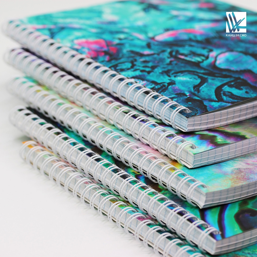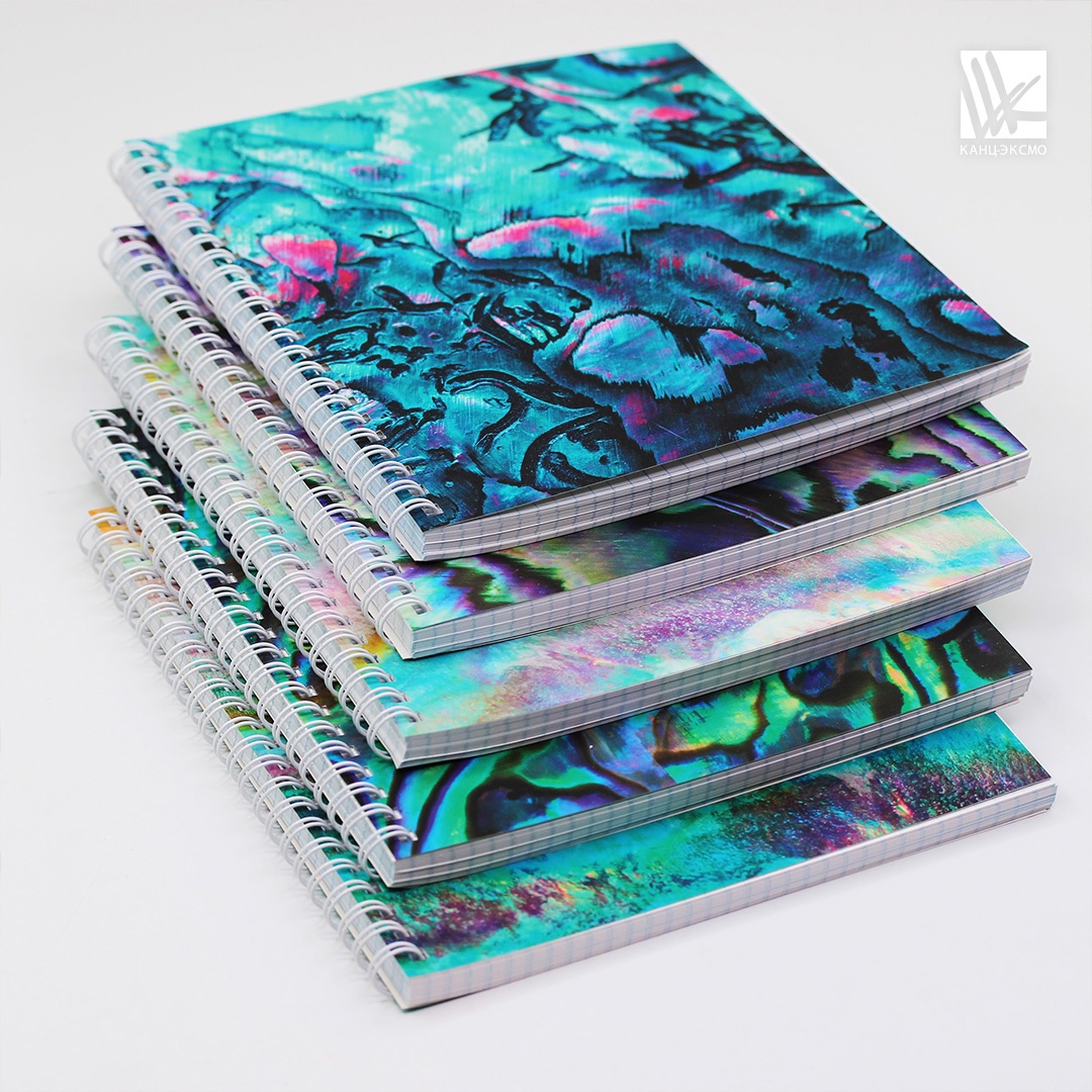 Новая серия тетрадей А5 на гребне «Перламутр» создана для фиксации важных записей и покорения ваших сердец. На обложке изображены красочные перламутровые переливы.