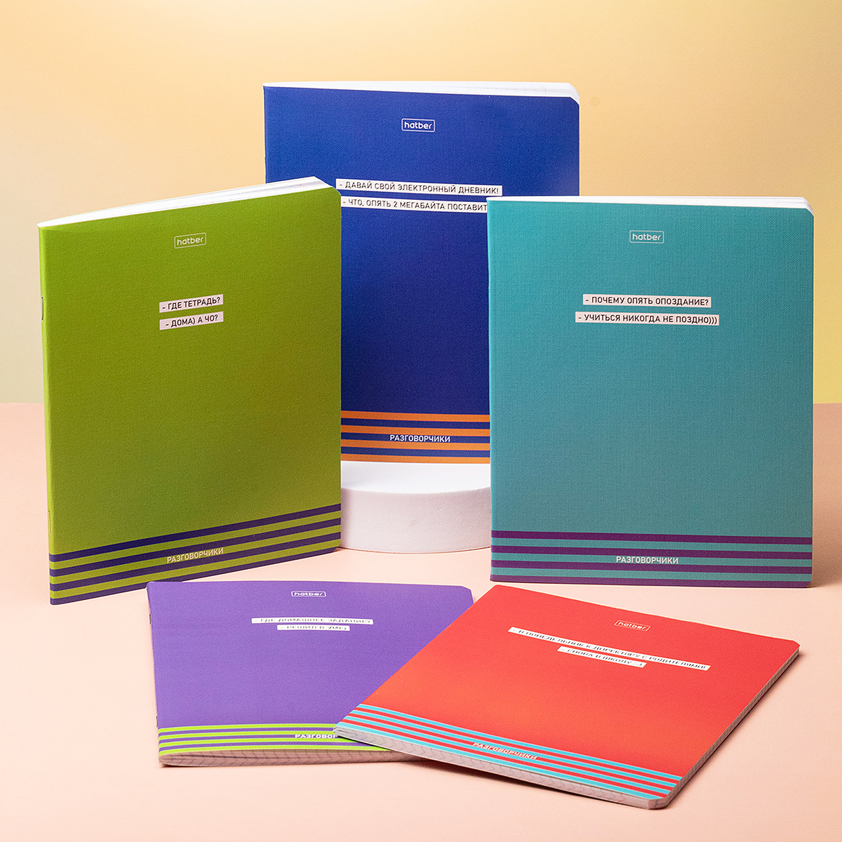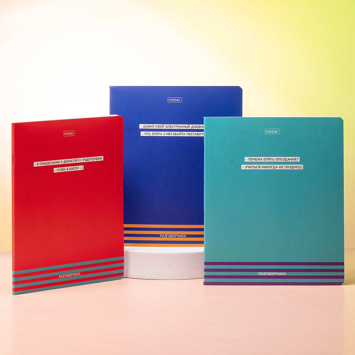 Hatber представляет тетради «Разговорчики». Мощный упор на слова и смысл, сочные цвета — и никаких лишних деталей. Динамичный, ёмкий минимализм на каждой обложке. Молодёжь точно оценит!