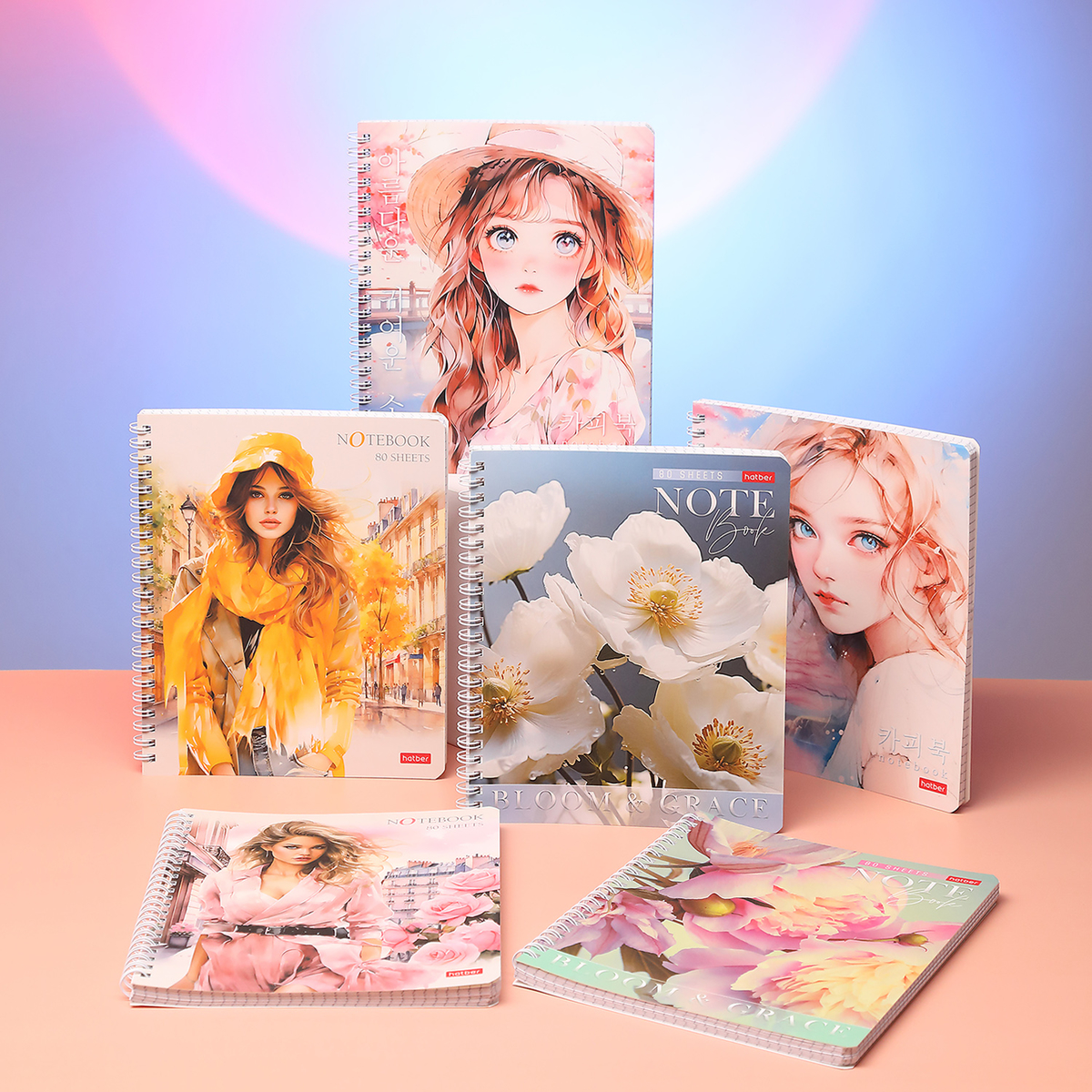 Серия «Нежность». Похоже, аниме-стиль был создан для того, чтобы показать нежность и хрупкость девичьей натуры! На обложках тетрадей два очаровательных портрета, наполненных солнечным светом, загадкой и робостью. Большие чистые глаза, милый румянец на щеках и весеннее настроение точно понравятся девушкам!