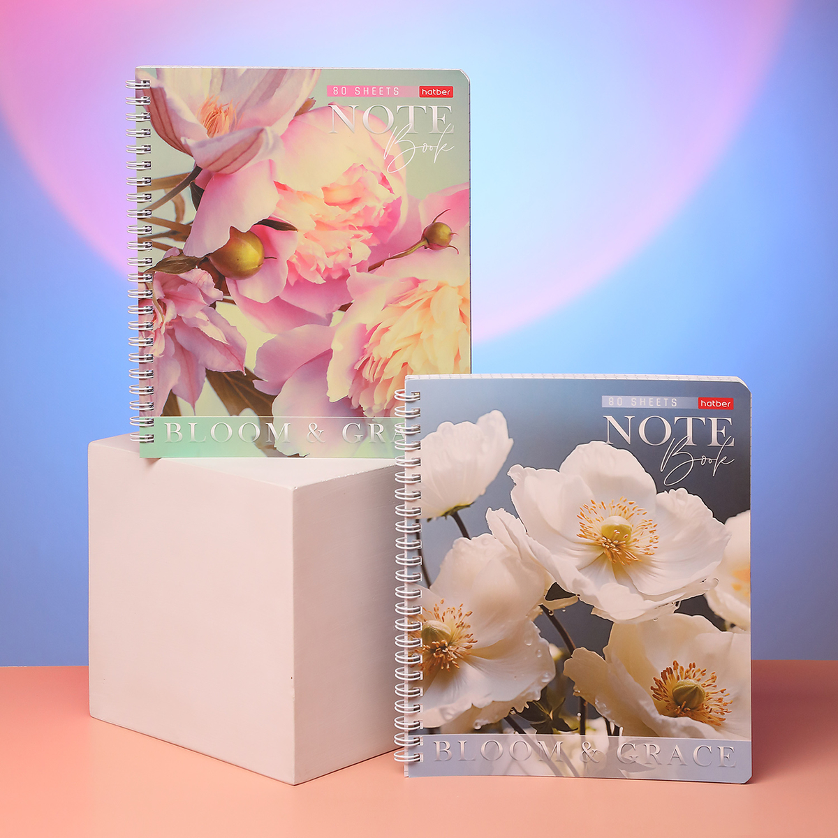 Серия «Цветение и грация». Душистые и пушистые пионы, нежные белые лепестки распустившихся бутонов украшают две обложки тетрадей и символизируют собой тёплые времена года. Девочкам и девушкам серия обязательно приглянется. Жаль только, что тетради не в силах пока передавать цветочный аромат!