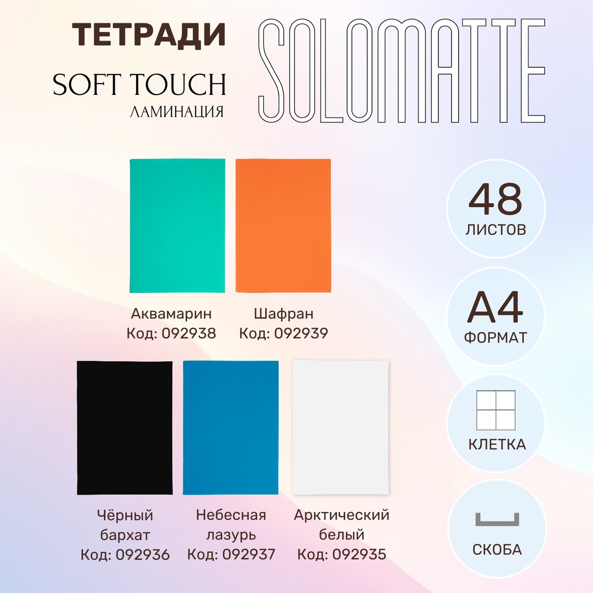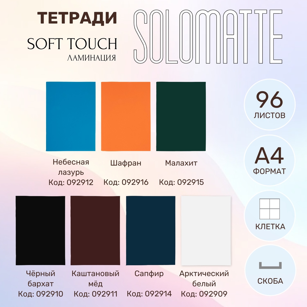 Серия тетрадей Solomatte формата А4 от Hatber — точка отсчёта для крутых дизайнерских решений! На прямоугольной обложке с эффектом Soft Touch есть только цвет. Да-да, только цвет. Оригинальный, необычный оттенок — и больше ничего. Совсем.