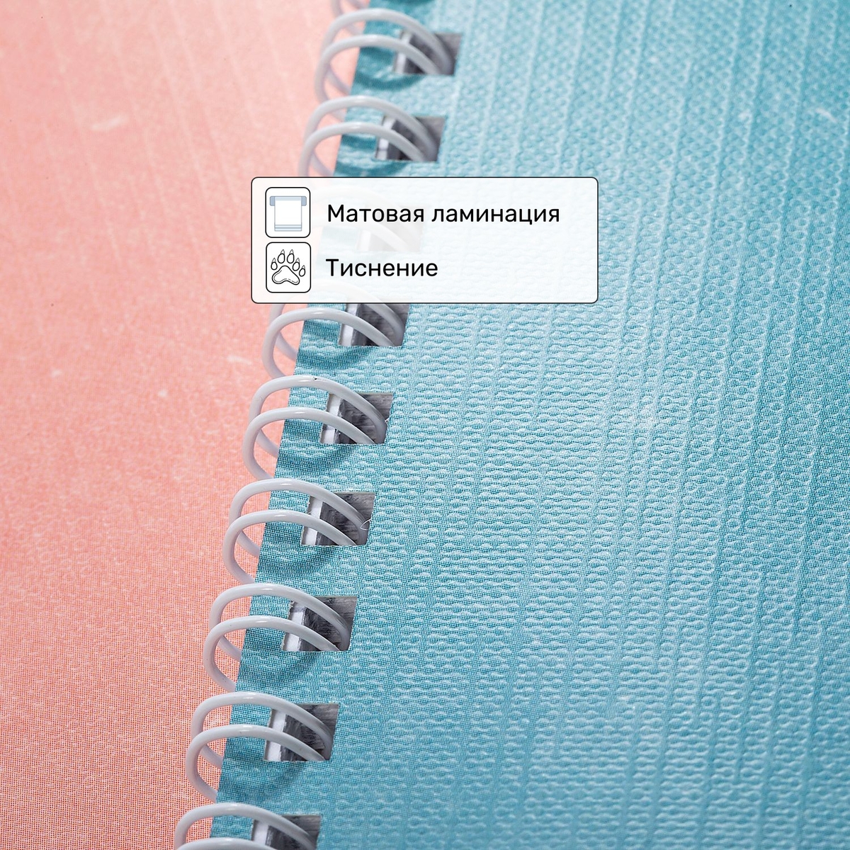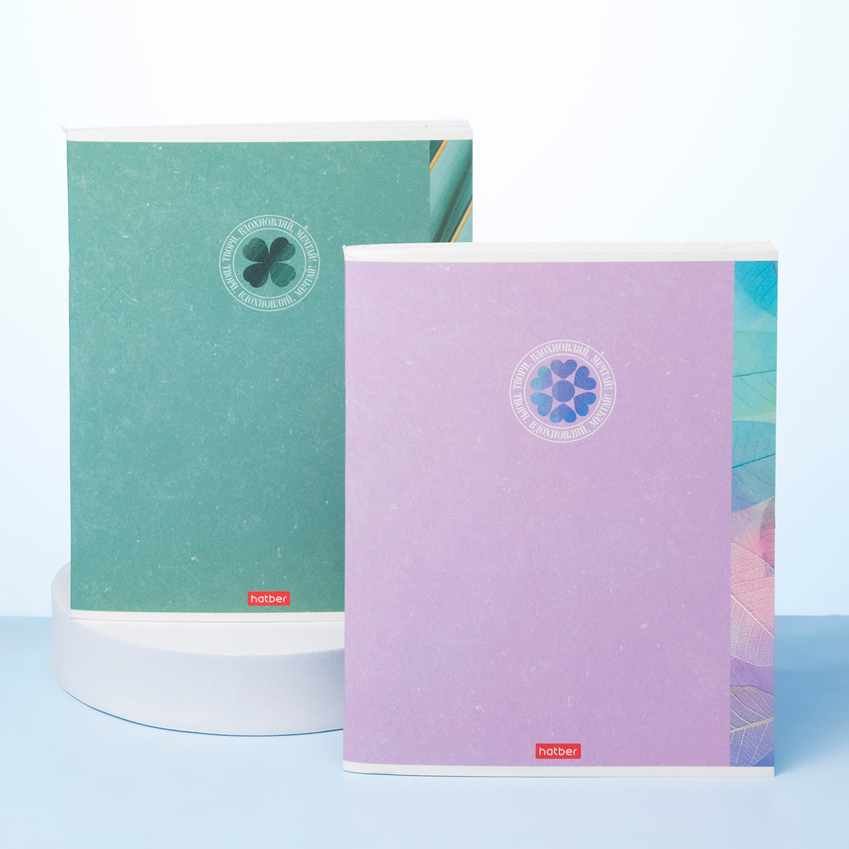 Обложки с эффектом soft touch и тиснением приятны на ощупь и гармонично дополняют простые, но философские и трогательные дизайны. Нежные фоны выполнены в трендовых оттенках, а маленькие пиктограммы связаны с атмосферной полосой живой текстуры с края тетради.