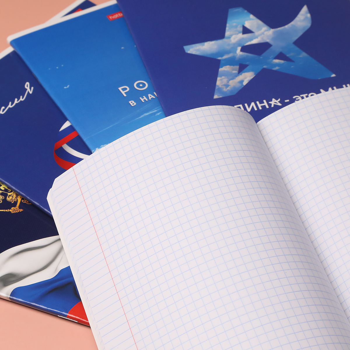 Завораживающая синева неба и воздушные облака родных краев, величественный герб и триколор — с лицевой стороны обложки, гимн Российской Федерации — с обратной стороны. Всё важное, всё нужное — в каждой тетради.