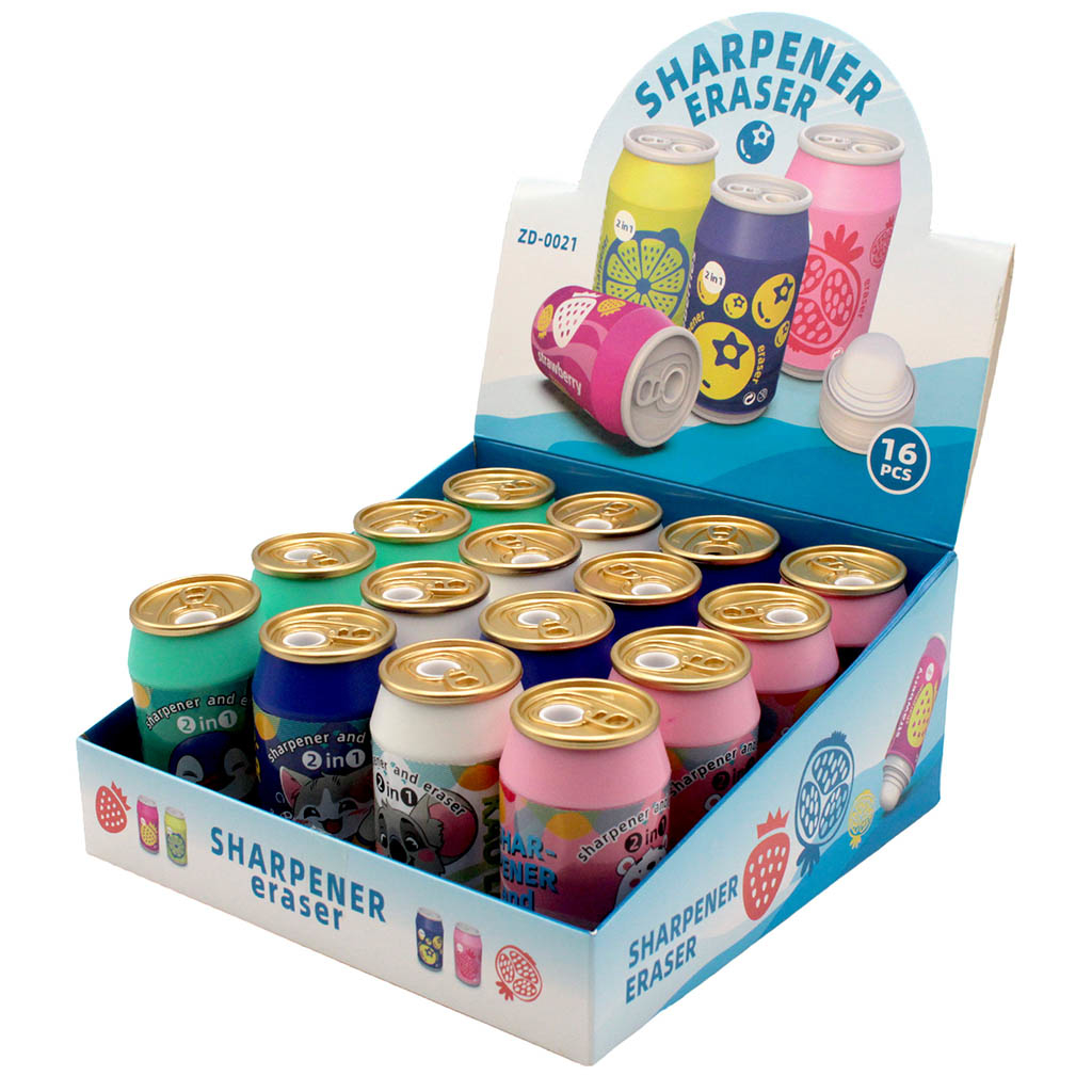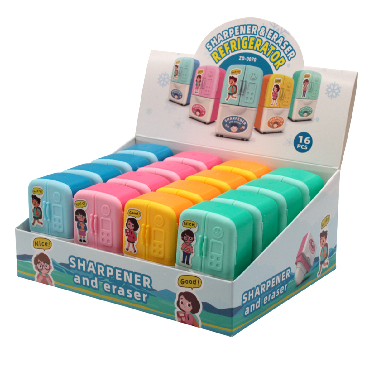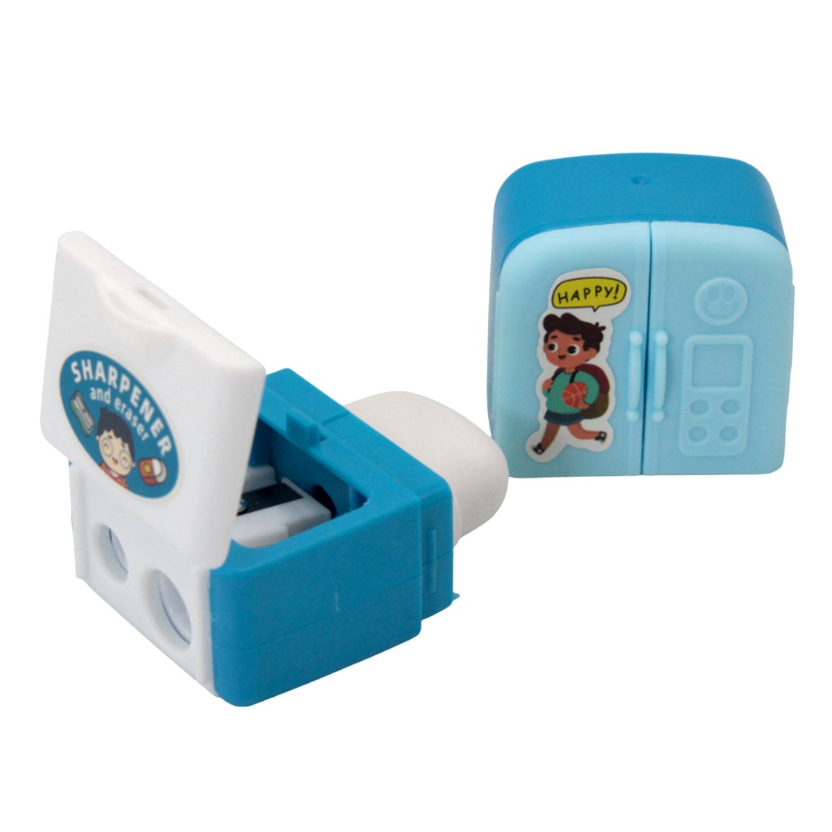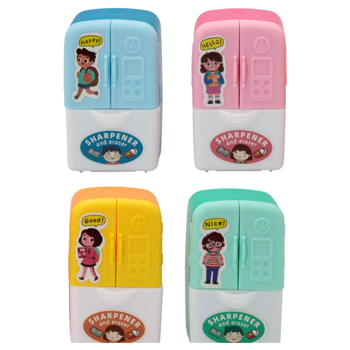 Яркие точилки, дополненные ластиками, существенно сэкономят место в пенале и не отнимут дополнительного времени на поиски нужного предмета.