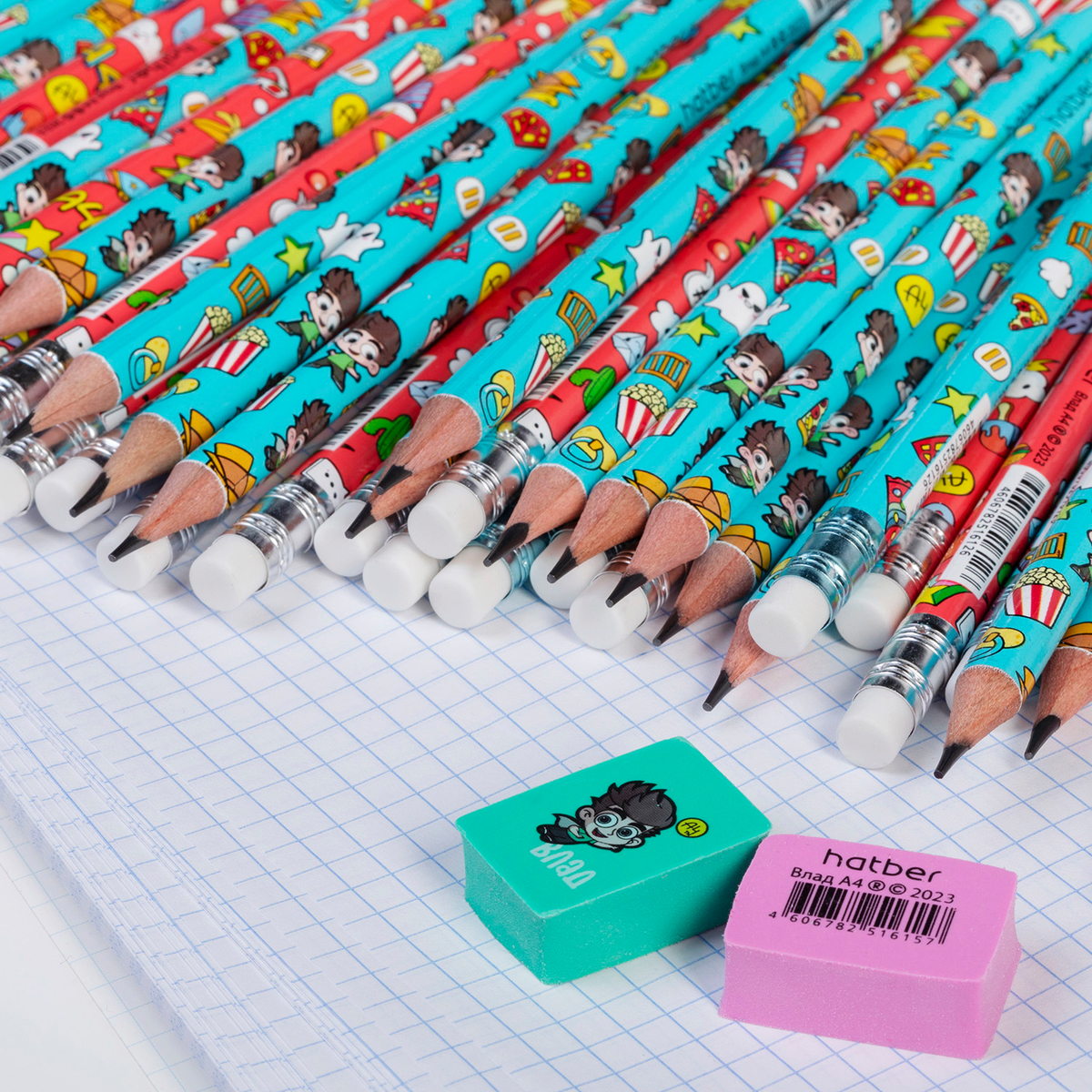 Карандаши, ластики, тетради