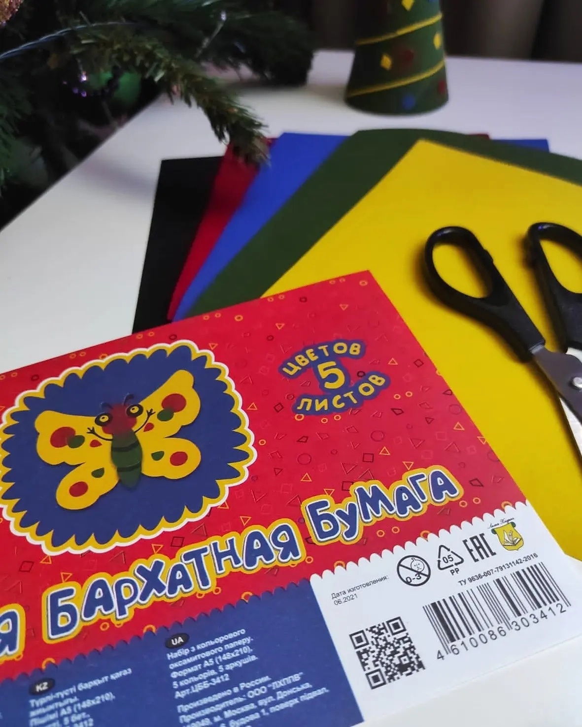 Формат 148х210, в наборе 5 цветов (жёлтый, красный, синий, зелёный и чёрный). Такая бумага поможет сделать поделки и аппликации необычнее и объёмнее, а работа с фактурой будет способствовать развитию моторики у ребёнка.
