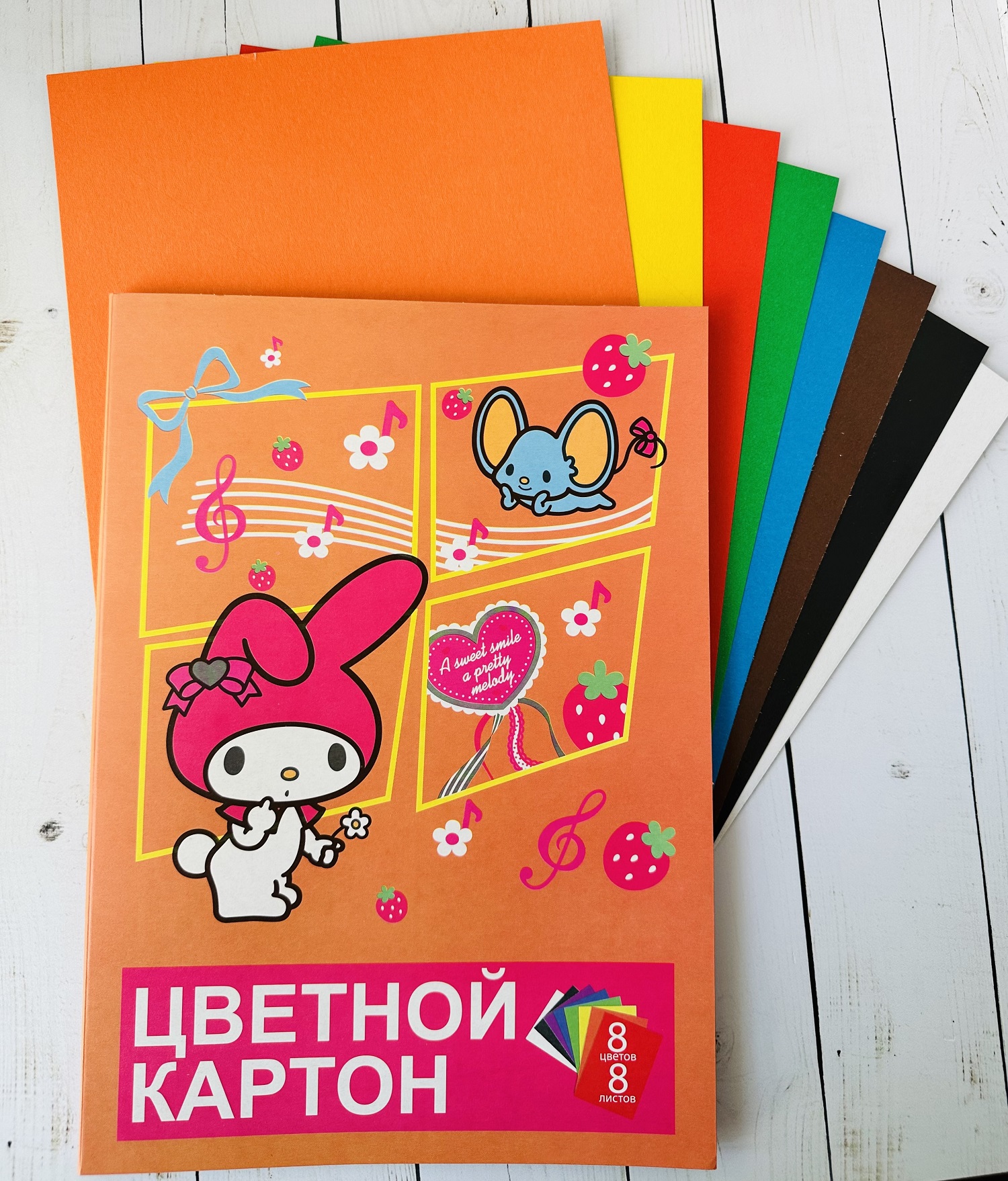 Наборы цветного картона представлены в картонной папке, удобной для хранения и транспортировки, в наборе из 8 листов.