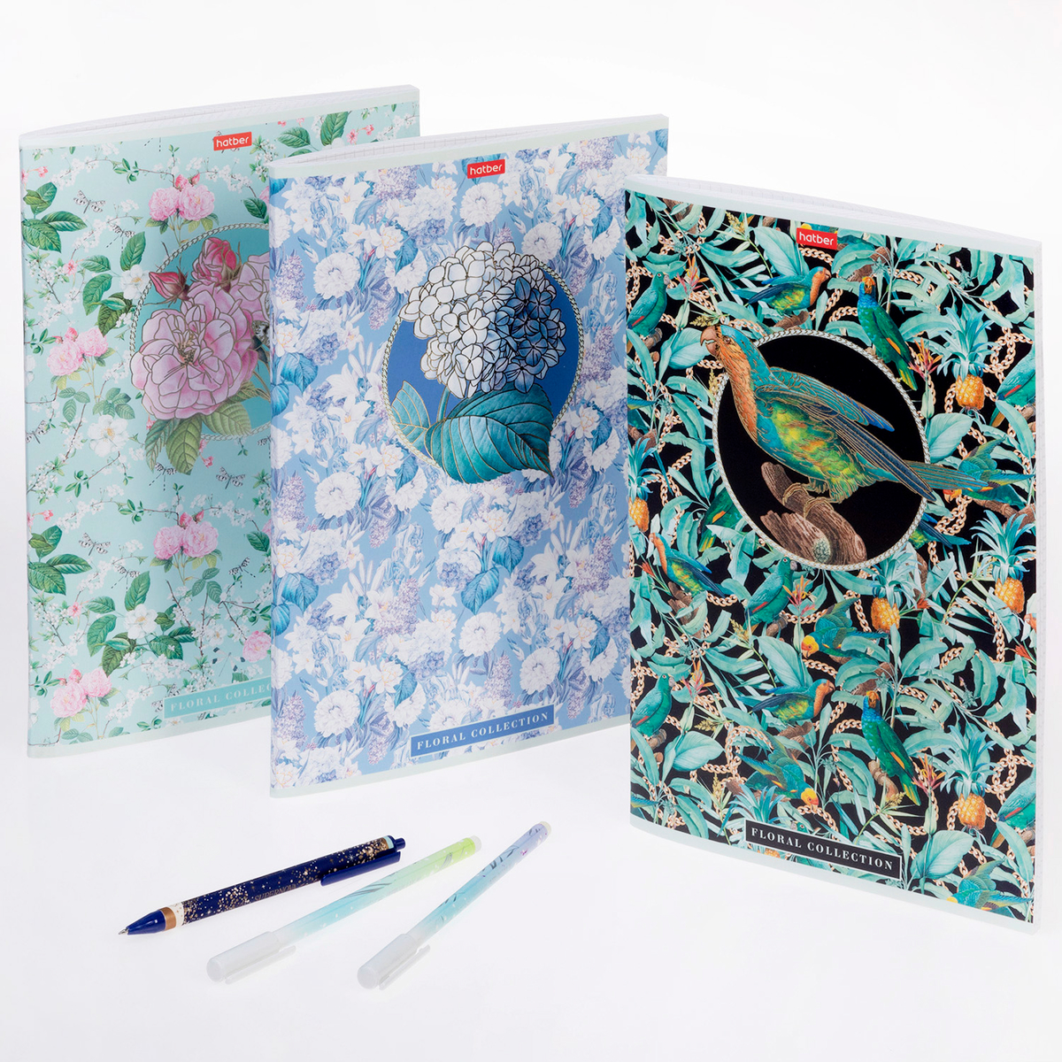 - тетрадь А4 формата 96 листов на скобе в клетку Floral collection — с матовой ламинацией и 3D-фольгой.
