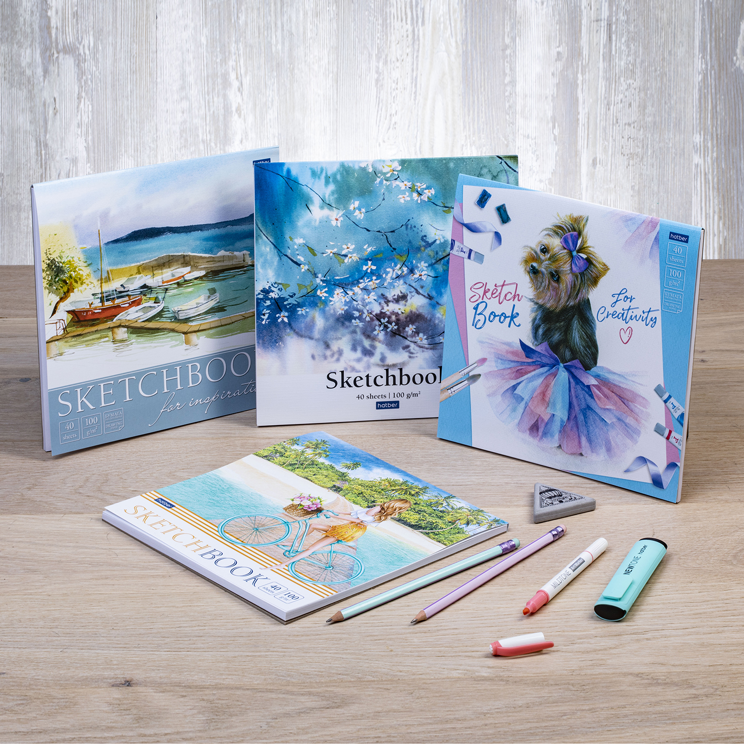 Новинки А4-формата 40 листов 100 г/кв. м на отрывной склейке с глянцевой ламинацией, тиснением и жёсткой подложкой — то что нужно для быстрых набросков в удобном вам положении и месте.