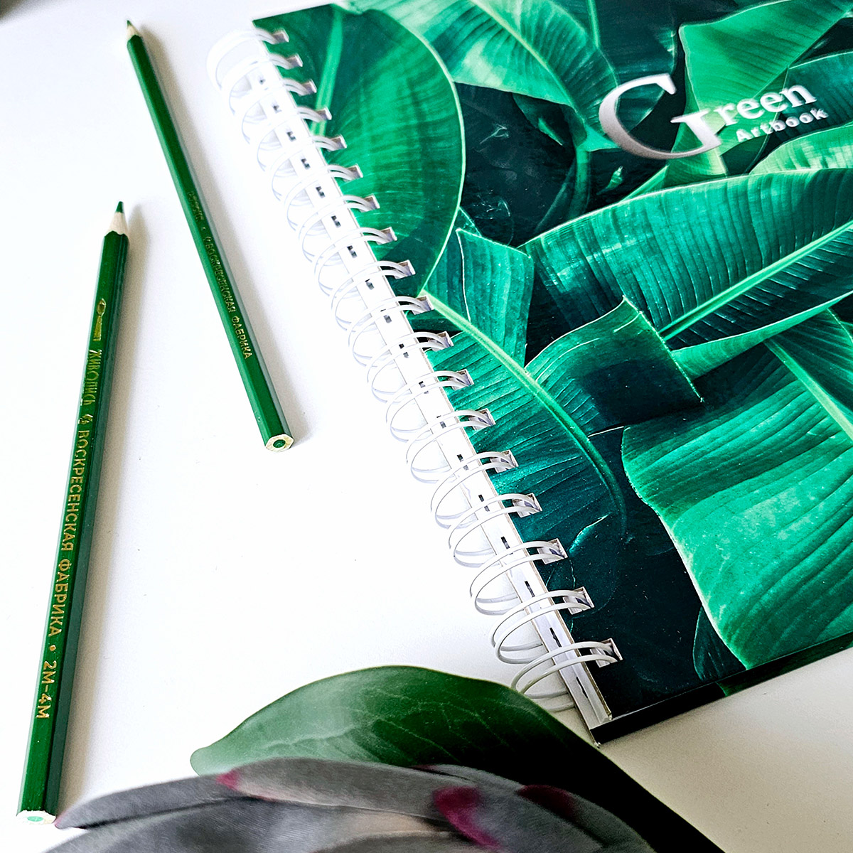 Начало искусства лежит в самой природе! Артбук от SVETOCH «Гринлайн» играет глянцевыми бликами в больших листьях банановой пальмы.