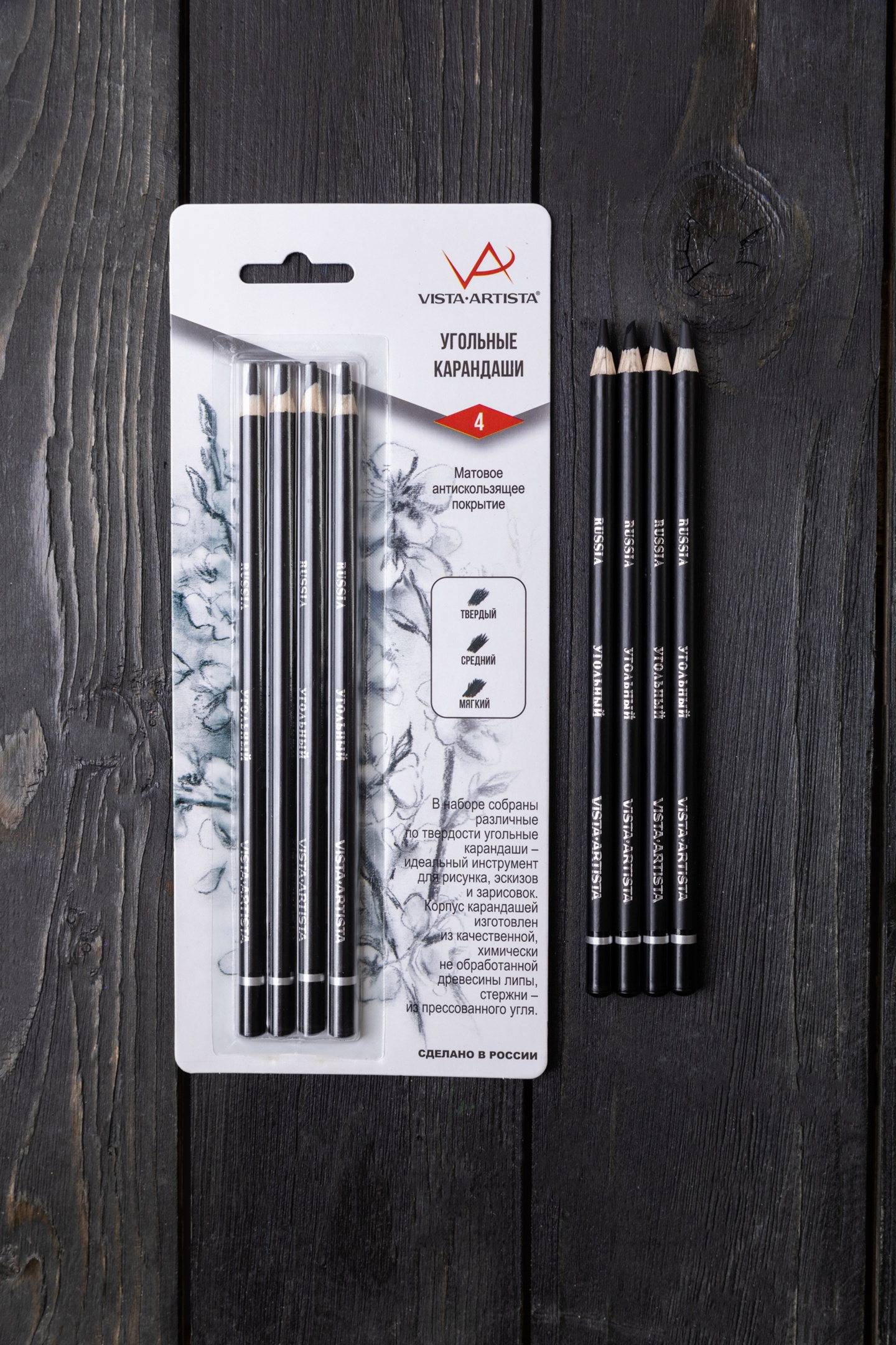 Угольные карандаши VACPB-4 — идеальный инструмент для рисунка, эскизов и зарисовок. Стильный корпус карандашей изготовлен из качественной древесины липы с матовым антискользящим покрытием, стержни — из прессованного угля.
