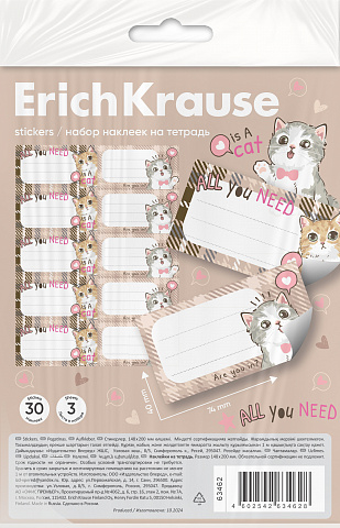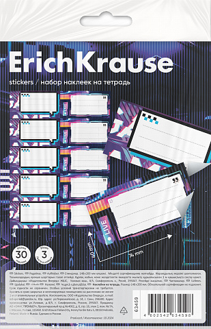 В наборе 30 наклеек размером 40 x 74 мм, изготовленных из самоклеящейся бумаги. Они аккуратно вырезаны по контуру, легко отклеиваются и надёжно крепятся на гладких и чистых поверхностях. На них можно писать шариковыми, гелевыми, капиллярными ручками и ручками-роллерами, а также маркерами и фломастерами. Всё упаковано в прозрачный пакет с европодвесом для удобной выкладки и ознакомления.