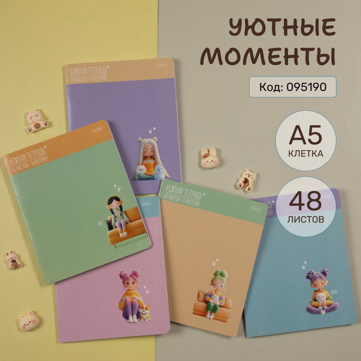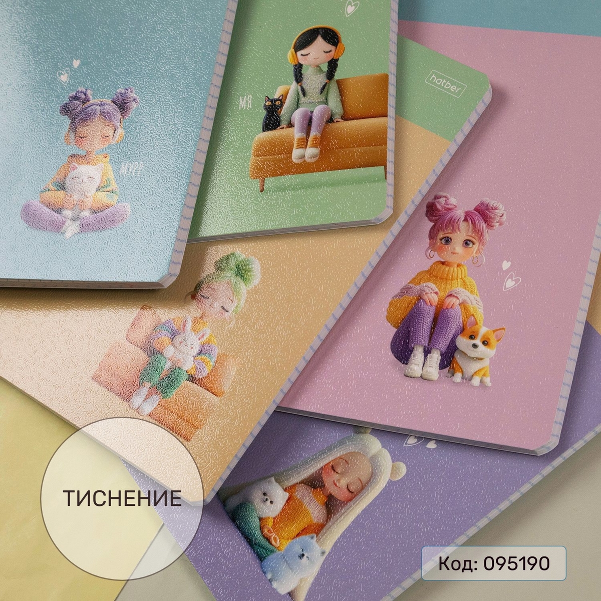 Серия «Уютные моменты». Пастельные весенние цвета и трогательные иллюстрации в стиле 3D. Умиротворение видно в мягких и уютных домашних образах девчонок, в пушистых питомцах, которые всегда рядом. Обложки с тиснением.
