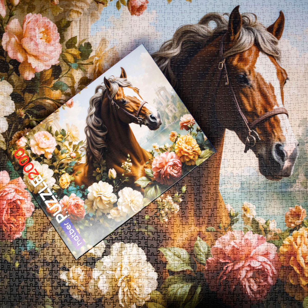 Представьте: солнечный день на берегу горного озера, летний бриз играет с бархатными лепестками цветов, и на фоне этого чудесного пейзажа пасётся грациозная лошадь. Именно эту картину запечатлел новый пазл «Лошадь в цветах» на 2000 элементов — 2000 мгновений, чтобы погрузиться в мир красоты и гармонии.