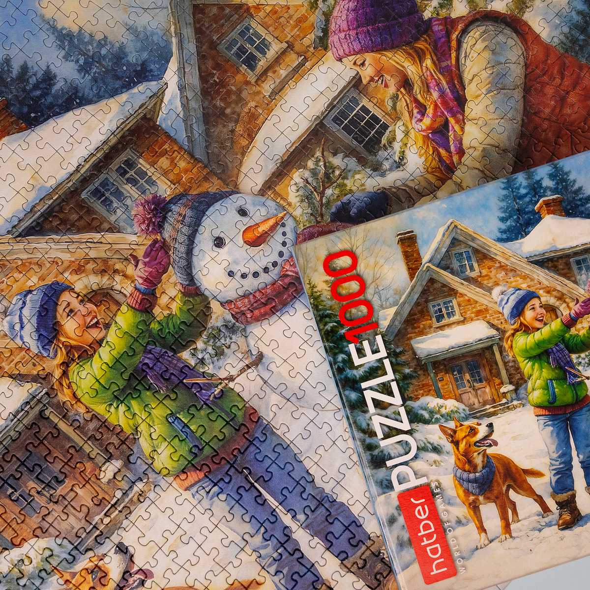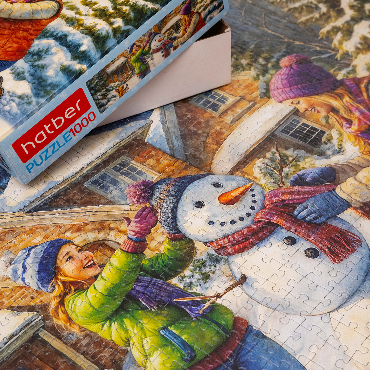 Подарите себе и близким радость зимних забав с ярким пазлом на 1000 деталей «Снеговичок». Этот сюжет как окно в прошлое, в те волшебные зимние дни, когда всё вокруг было наполнено искренним смехом, снежными играми и теплом семейного уюта.