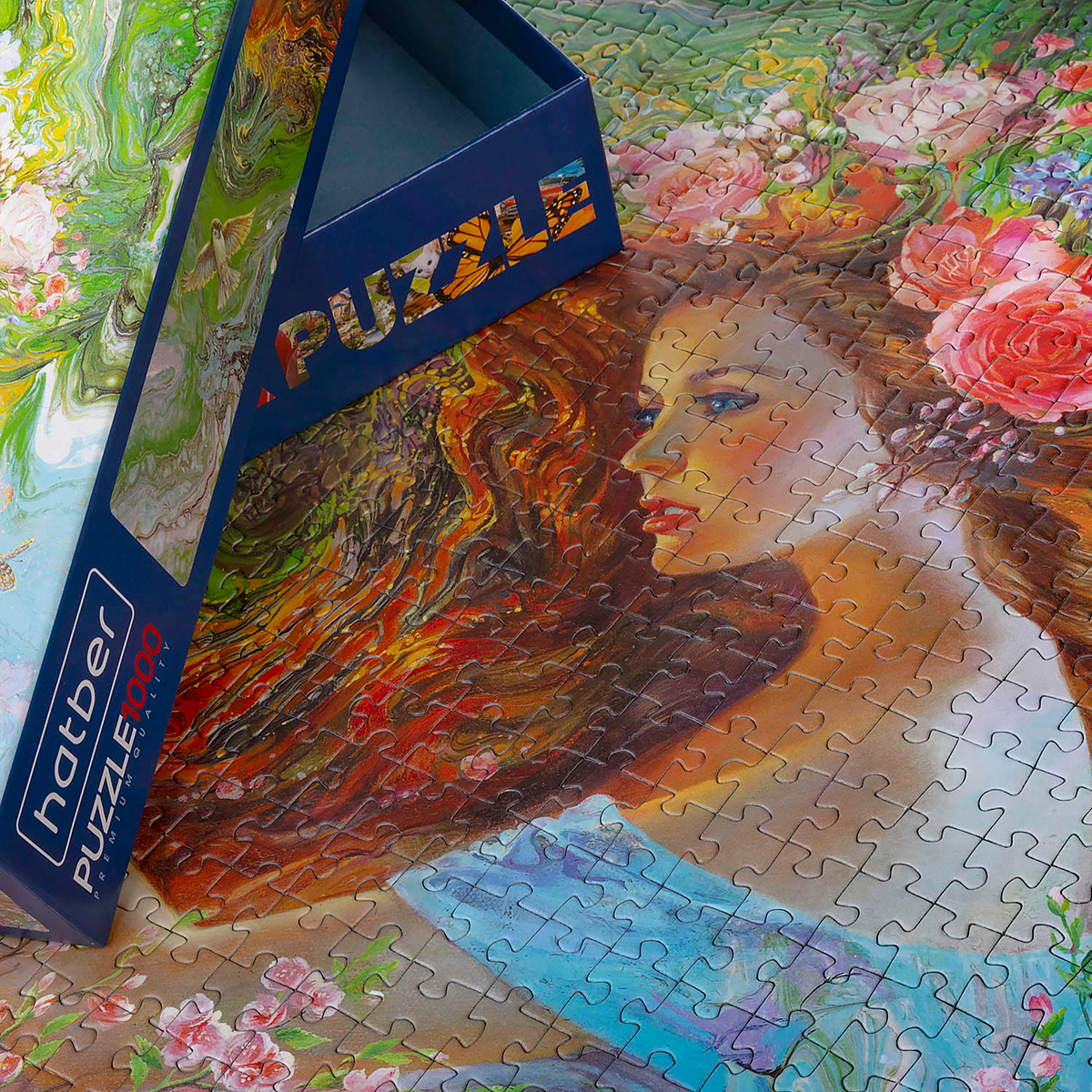 Премиум-пазл «Девушка Весна» очаровывает и манит своим великолепием. Абстракция, природа, и портрет милой девушки — этот пазл вобрал в себя всё самое лучшее! Как тут устоять перед такой красотой?