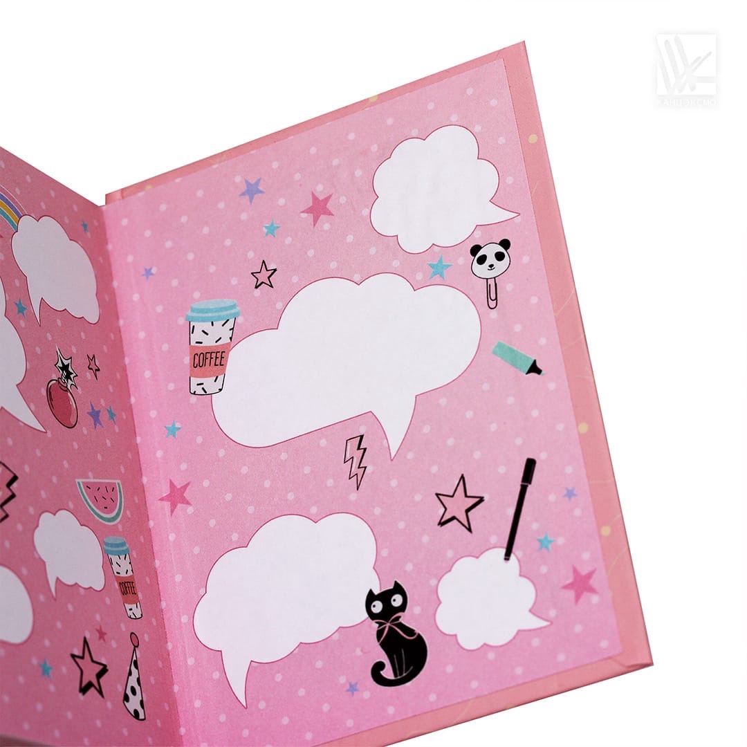 Весёлые блокноты от «Эксмо» станет отличным хранителем секретиков, интересных идей и мыслей. Яркая обложка с милейшими персонажами и красочным разворотом не дадут заскучать и зарядят позитивным настроем.