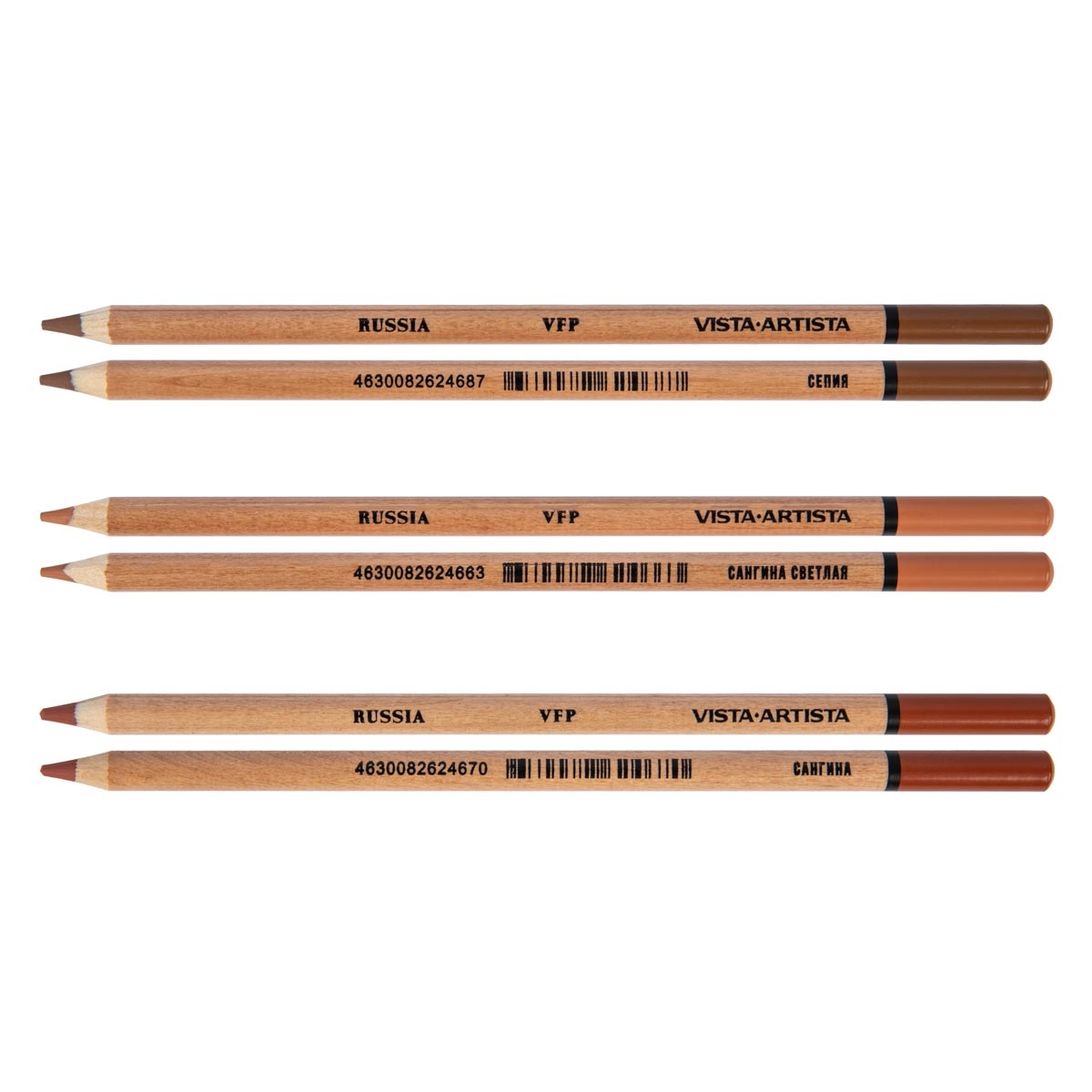 | Краткая: Новые карандаши с сухой пастелью в трех популярных оттенках. Сделано в России. Карандаш пастельный VFP оттенков: сангина, сангина светлая, сепия — идеально подходят для создания набросков, эскизов и портретов. |