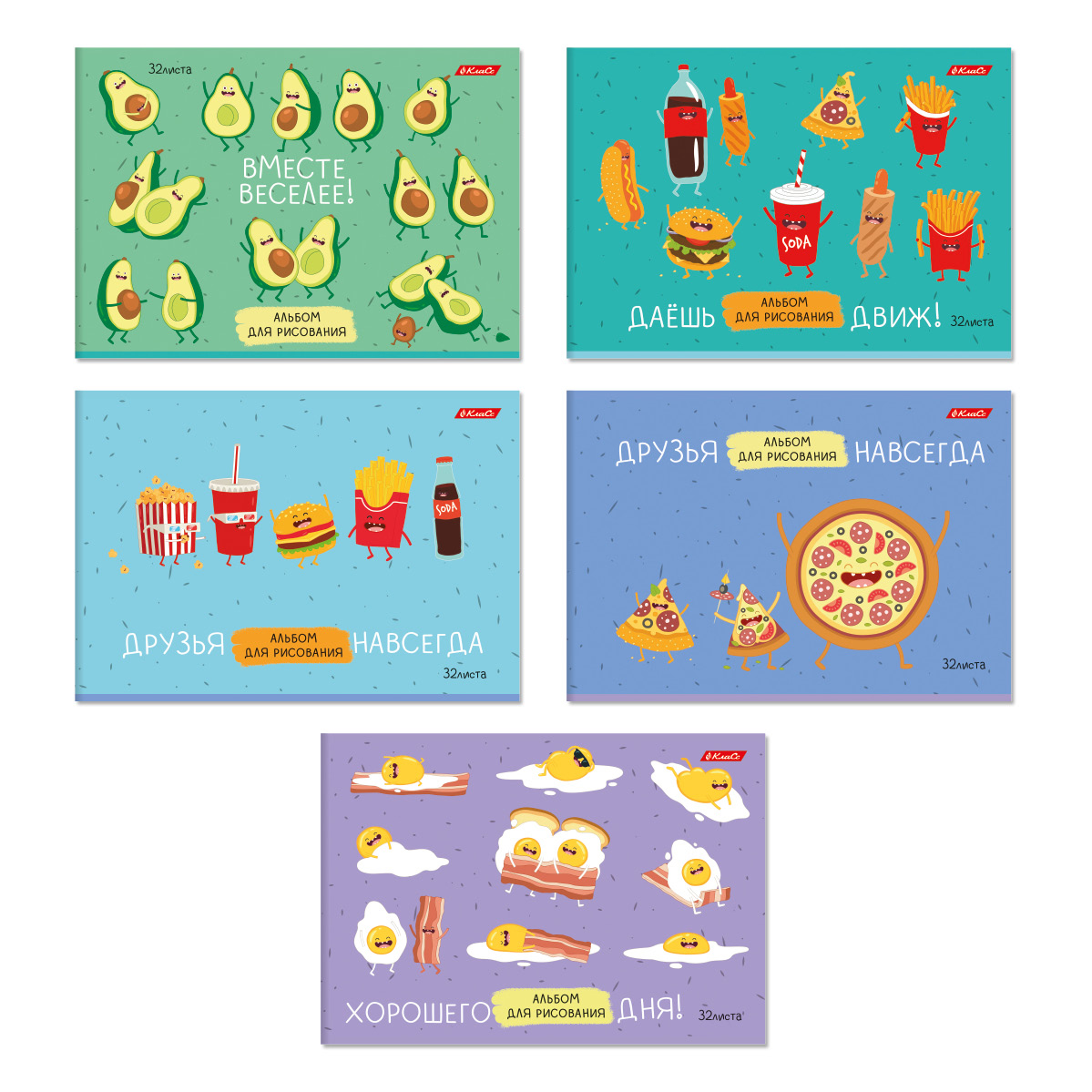 Альбомы для рисования «Вредный завтрак» поднимают вопрос о вкусной еде, которую веселее есть целой компанией. Яркие и позитивные флэт-иллюстрации о дружбе, движе и просто хорошей встрече — отличный старт для творчества!