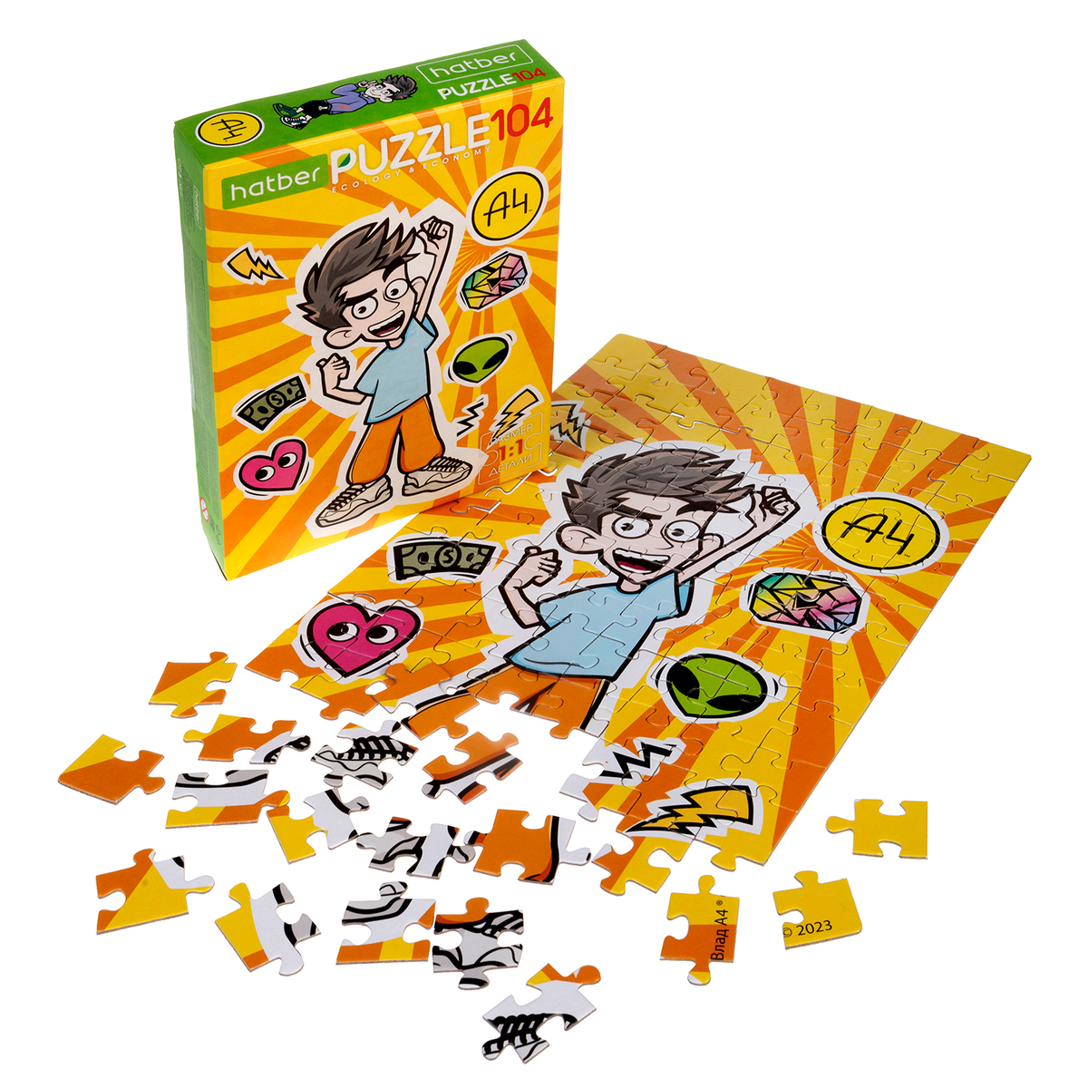 И сегодня мы представляем вам эту сочную новинку на 104 элемента с крупными деталями. Стильный и весёлый Влад, отрисованный в мультяшной технике, на ярком жёлто-оранжевом фоне со стикерами в стиле комиксов, смотрится настолько классно, что хочется поскорее собрать эту иллюстрацию форматом А4.