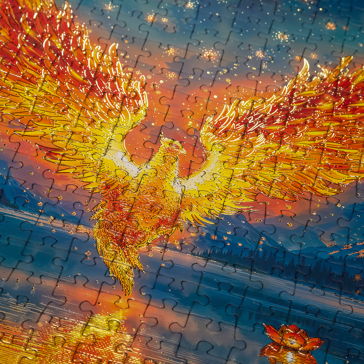 Представляем новинку — премиальный пазл Lux Collection «Птица Феникс» на 500 элементов, который открывает дверь в мир магии и вдохновения. Это не просто яркая панорама: эффектное изображение огненной птицы, вырастающей из сияния заката над загадочным озером, превращает сборку в настоящую феерию творчества и эмоций.