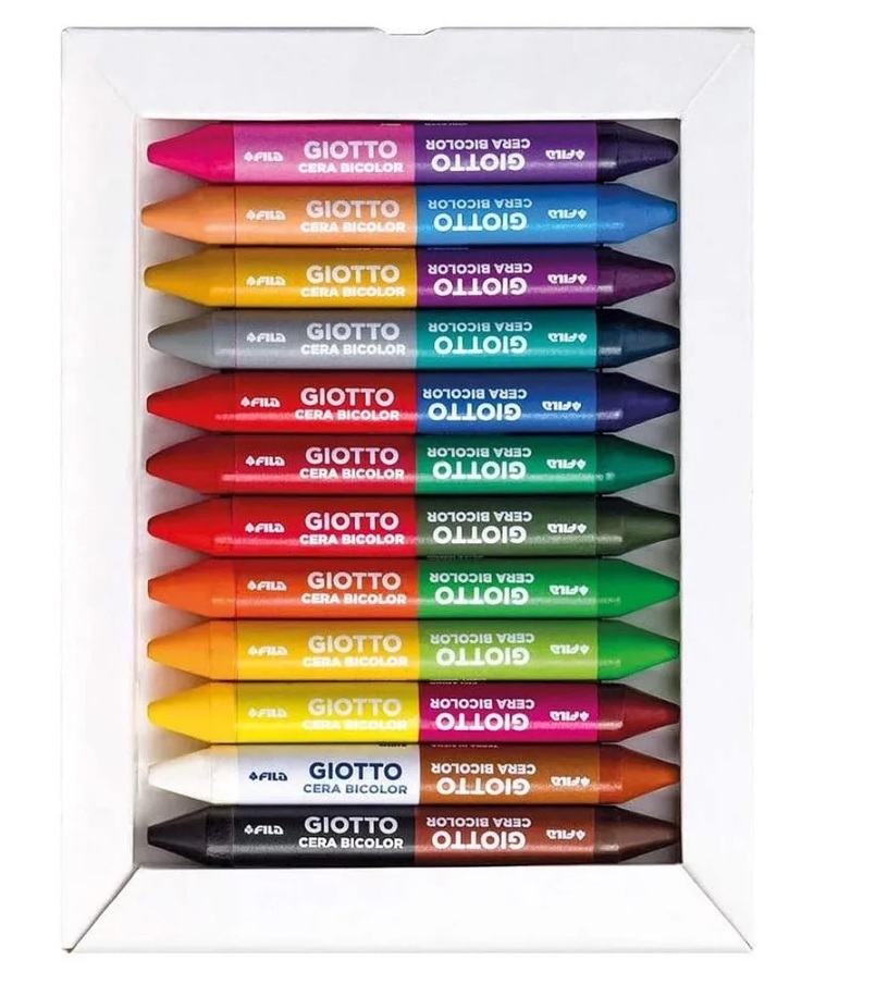 Giotto Cera Bicolor — классные двусторонние и высококачественные мелки. 24 цвета на 12 карандашах-мелках изготовлены для комфортного рисования. Восковые карандаши сделаны из растительных ингредиентов с использованием натуральных пигментов. Мелки Giotto Cera Bicolor мягко рисуют на бумаге, картоне, стекле, пластике или керамике и не требуют сильного нажима для воплощения всех творческих идей.