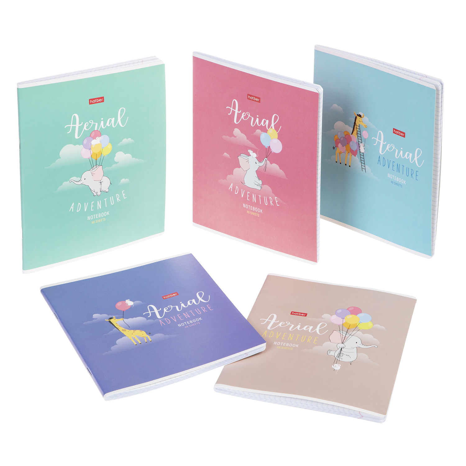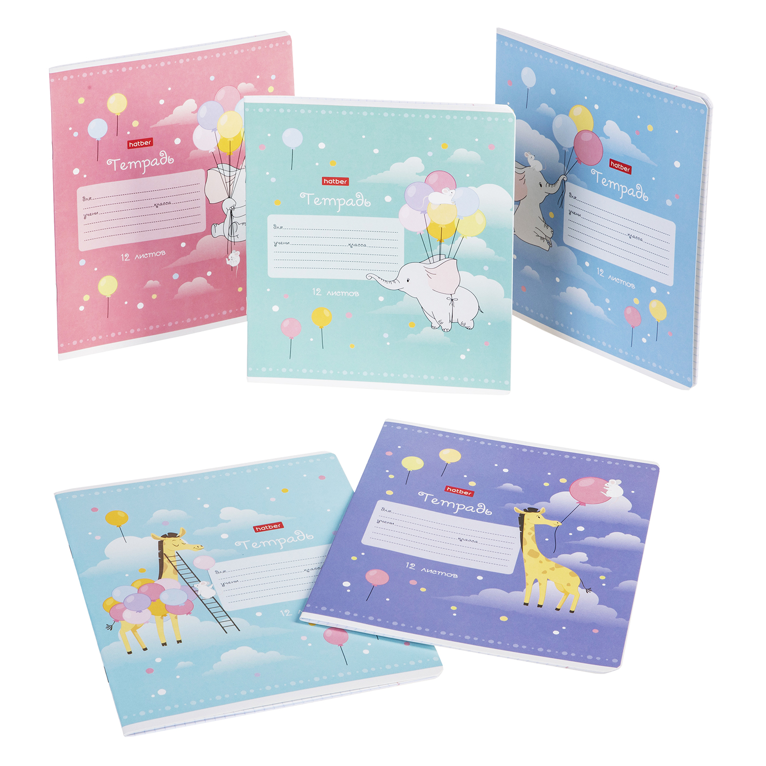 Представляем вам наши новые тетради А5-формата на скобе в клетку серии «Воздушное путешествие». Тетради 12 листов и 48 листов с милыми слониками и жирафами, окружёнными воздушными шариками и облаками. Обложки выполнены в теплых пастельных тонах с мягкой матовой ламинацией, умиляют своей нежностью и лёгкостью.